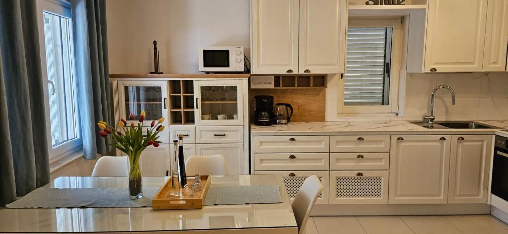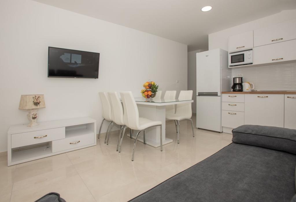 Villa Branka er et charmerende hus med fem separate boligenheder, ideelt til en afslappende ferie i naturen. Omgivet af grønne områder og beliggende i en unik beliggenhed med udsigt over Adriaterhavet på den ene side og det storslåede Biokovo-bjerg på den anden. Det ligger i en usædvanlig rolig del af Makarska Riviera, på en blid bakke, væk fra turistmængder og støj - perfekt til fuldstændig afslapning og privatliv. Samtidig ligger villaen kun 2 minutters kørsel fra stranden og 5 minutters kørsel fra centrum af Makarska, en malerisk turistby med et rigt udbud af faciliteter, restauranter og smukke strande. Den perfekte kombination af fred, natur og nærhed til alle vigtige faciliteter.
