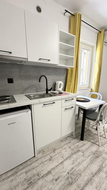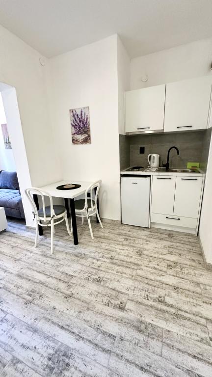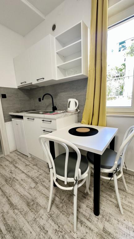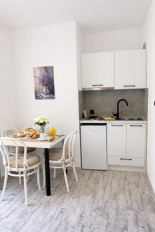 Villa Dalmacija ligger i Makarska, kun 2 minutters gang fra stranden, med en gratis parkeringsplads. Alle studios og lejligheder har aircondition, et lille køkken med komfur og basisudstyr, et lille køleskab, eget badeværelse og satellit-tv. Studie 2+1: et studie med en fransk seng og en sovesofa til 1 person, balkon (studiet på første sal har ikke balkon). Studio 3+1: et soveværelse med en fransk seng og en udtrækssofa til 1 til 2 personer, lukket hems, høj stueetage. Lejlighed 2+2: soveværelse med dobbeltseng og stue med sovesofa til 2 personer, terrasse. Lejlighederne ligger i øverste stueetage, på 2. eller 3. sal. Wi-Fi og parkering er gratis.