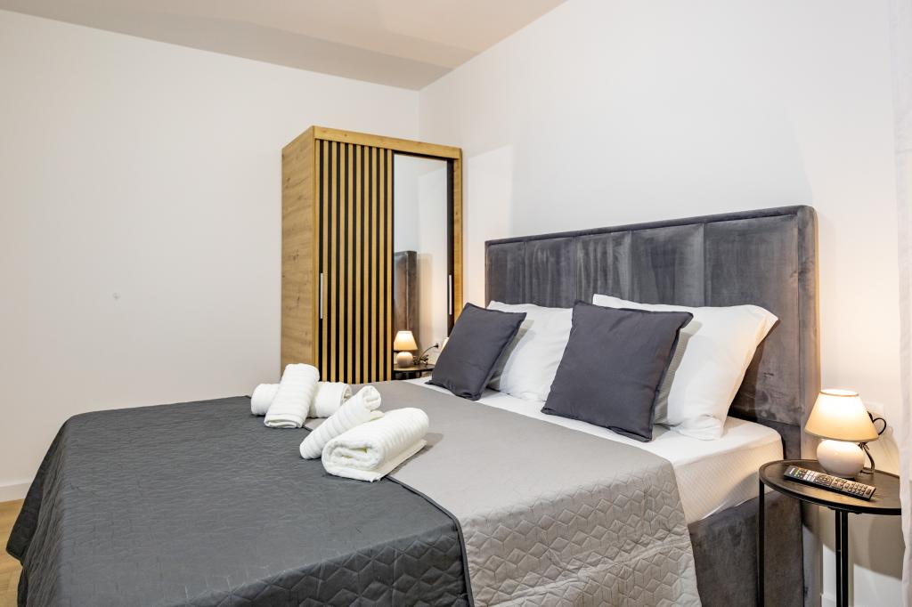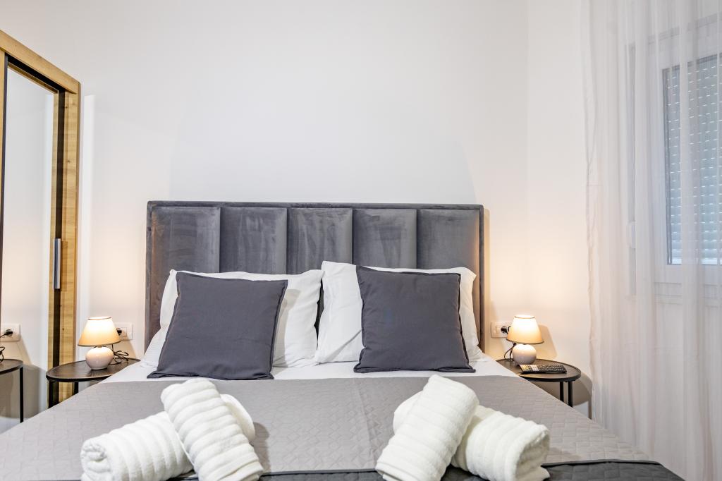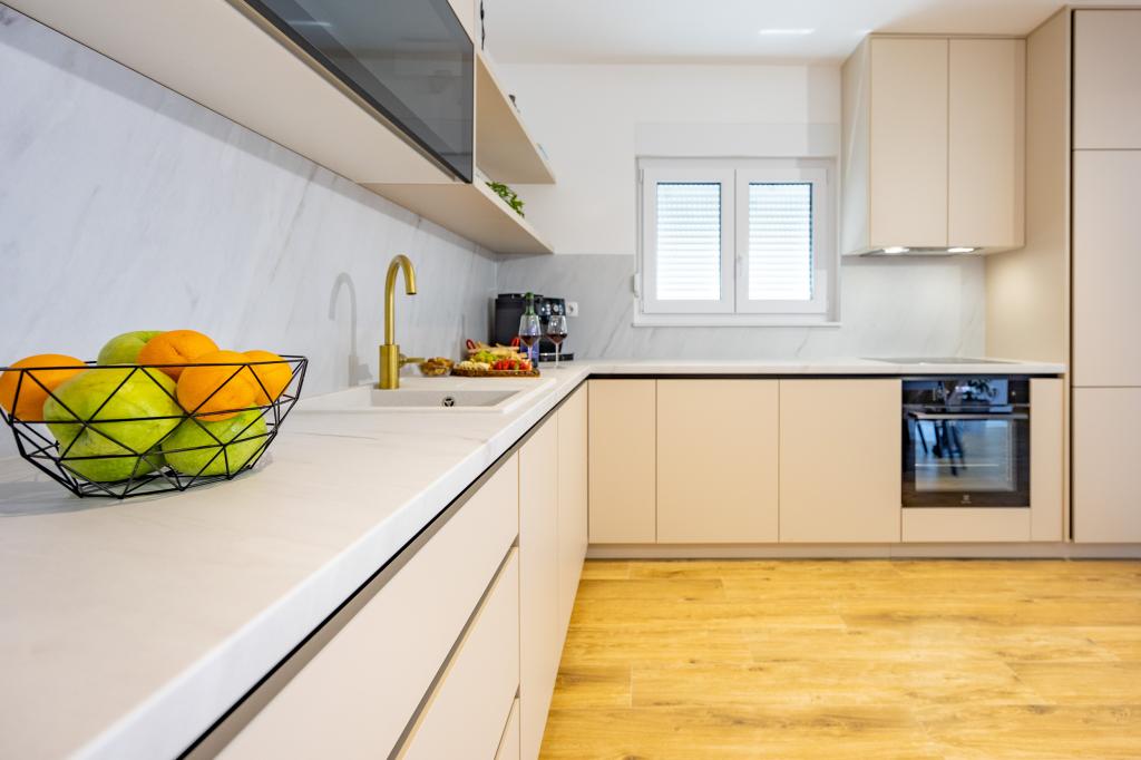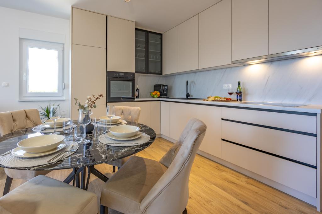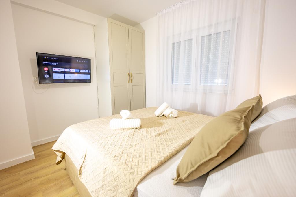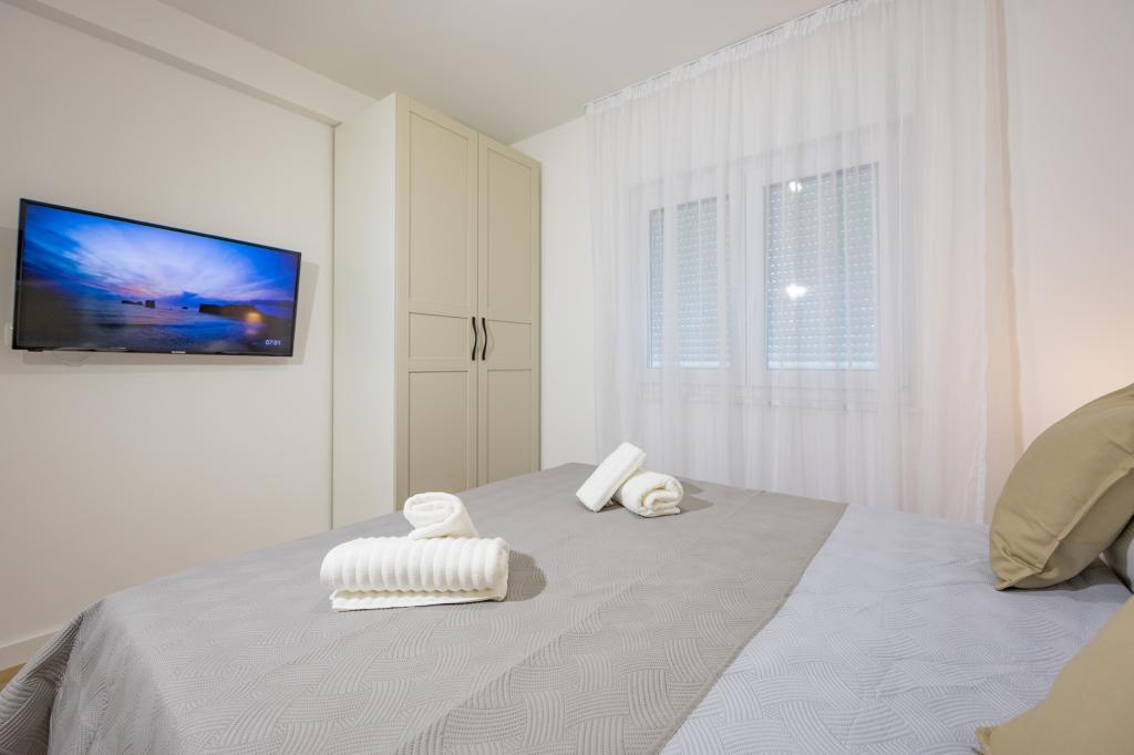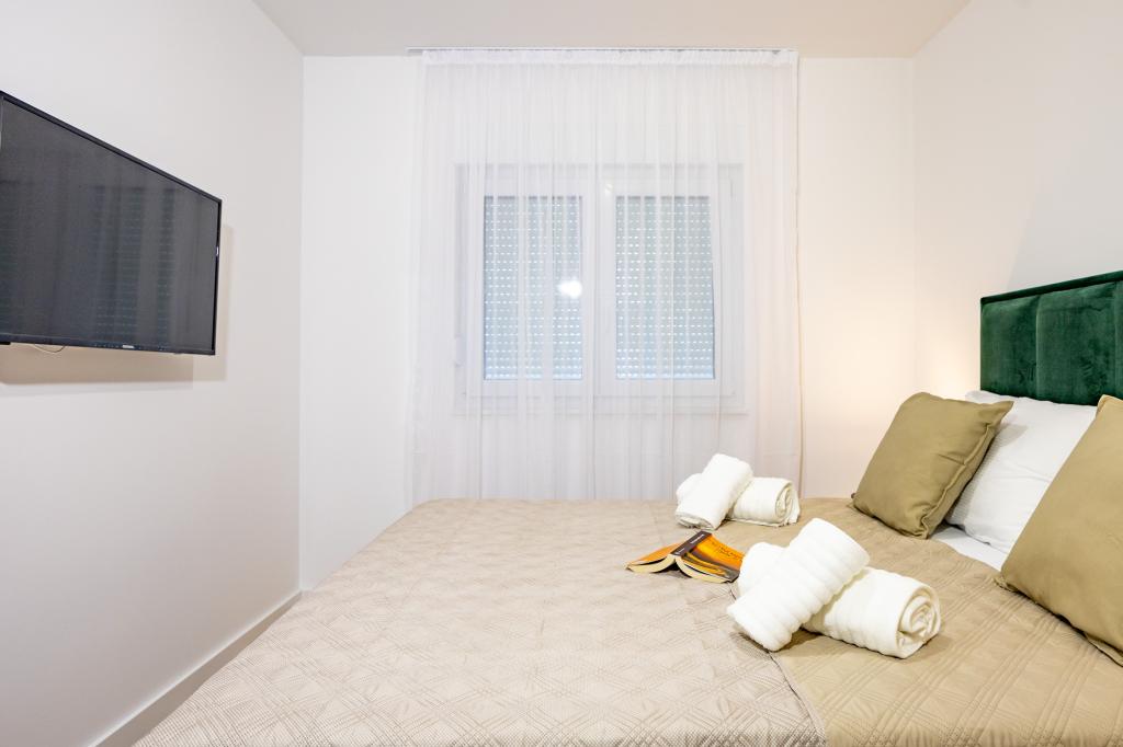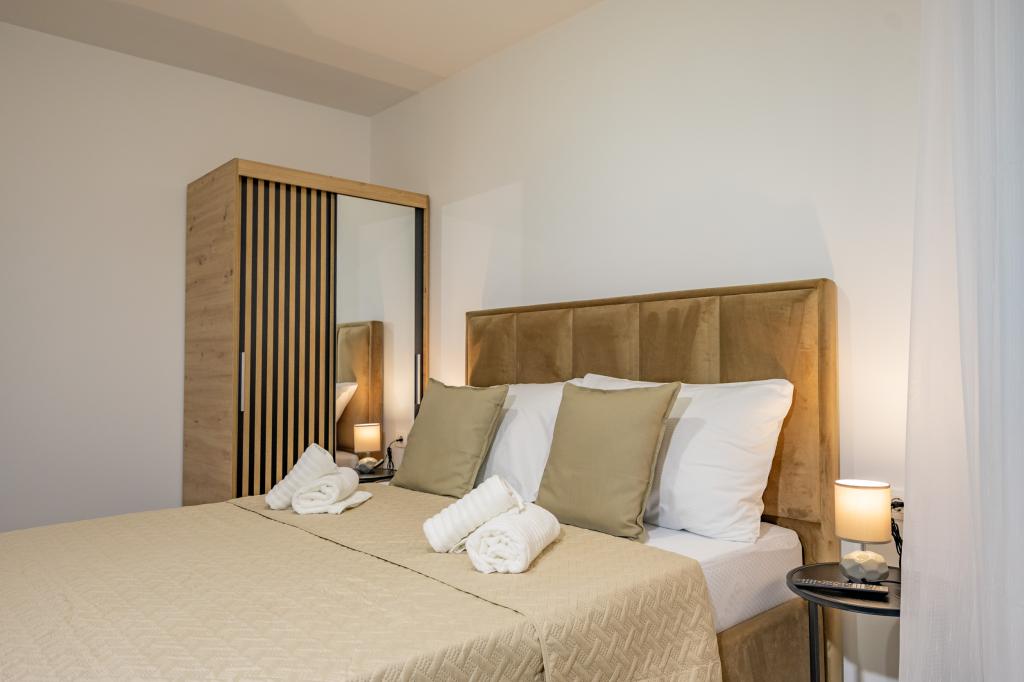 Hver lejlighed udstråler moderne design og nyrenoveret interiør. I den rummelige stue, der er indrettet med smagfulde møbler og moderne detaljer, vil du føle dig hjemme. Det åbne koncept forbinder naturligt stuen med et fuldt udstyret køkken, hvor elegante bordplader, kvalitetsapparater og al den plads, du har brug for til at tilberede dine yndlingsmåltider, venter på dig. Opholdsstuen åbner ud til en behagelig balkon - et ideelt sted til morgenkaffe eller aftenafslapning med et glas vin og en uforglemmelig solnedgang over Adriaterhavet. Hver lejlighed har to komfortable soveværelser med dobbeltsenge, udstyret med blødt sengetøj og masser af opbevaringsplads, et moderne badeværelse og et ekstra toilet. Lejlighederne har aircondition og er fuldt udstyrede: TV/SAT, internet, vaskemaskine, opvaskemaskine, kaffemaskine og alt hvad du behøver for et behageligt og ubekymret ophold.