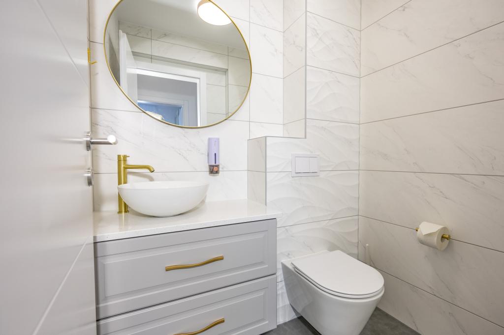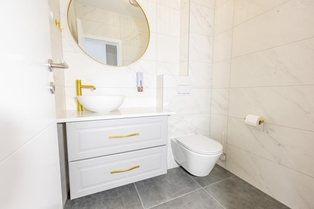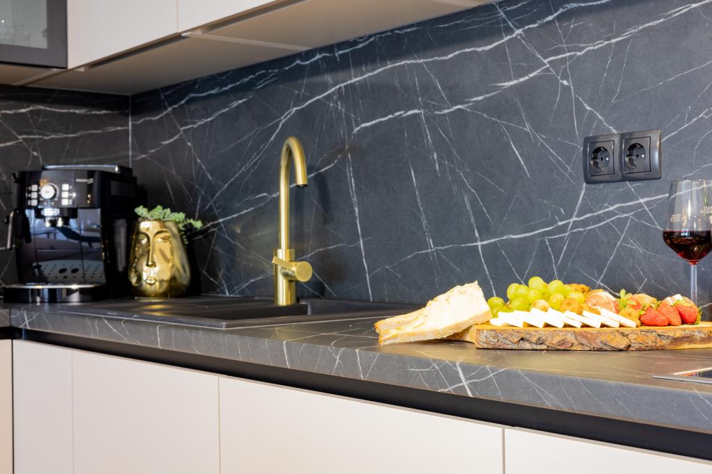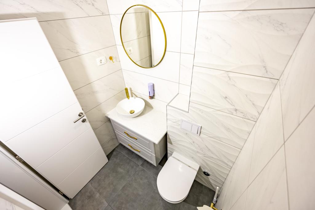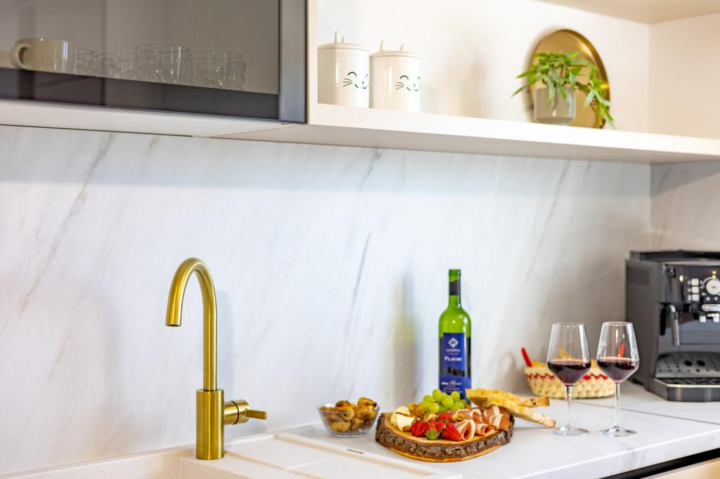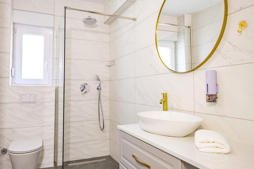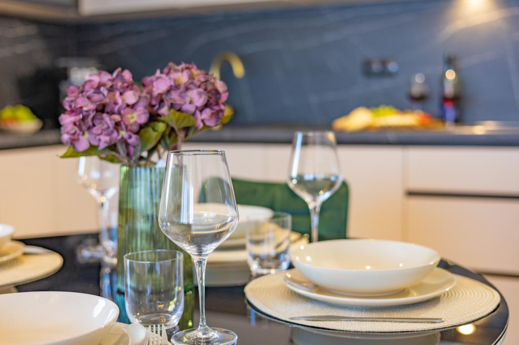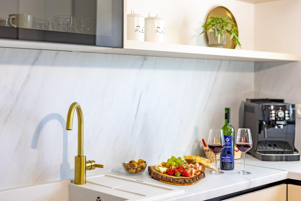 Hver lejlighed udstråler moderne design og nyrenoveret interiør. I den rummelige stue, der er indrettet med smagfulde møbler og moderne detaljer, vil du føle dig hjemme. Det åbne koncept forbinder naturligt stuen med et fuldt udstyret køkken, hvor elegante bordplader, kvalitetsapparater og al den plads, du har brug for til at tilberede dine yndlingsmåltider, venter på dig. Opholdsstuen åbner ud til en behagelig balkon - et ideelt sted til morgenkaffe eller aftenafslapning med et glas vin og en uforglemmelig solnedgang over Adriaterhavet. Hver lejlighed har to komfortable soveværelser med dobbeltsenge, udstyret med blødt sengetøj og masser af opbevaringsplads, et moderne badeværelse og et ekstra toilet. Lejlighederne har aircondition og er fuldt udstyrede: TV/SAT, internet, vaskemaskine, opvaskemaskine, kaffemaskine og alt hvad du behøver for et behageligt og ubekymret ophold.