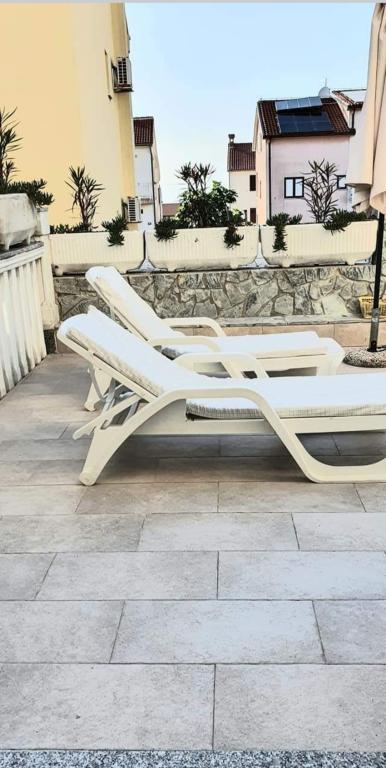 Lejligheden er beliggende i den smukke lille by Malinska på øen Krk. Det ligger i stueetagen. Den består af et soveværelse med en stor dobbeltseng (sengelinned inkluderet, skiftes hver 7. dag) og en stue med en udtrækssofa til to. Rummet er åbent, så spisestuen og stuen er forbundet. Udstyret med to fjernsyn - det ene i stuen med en mini-linje og det andet i soveværelset. Lejligheden har et badeværelse med bruser (3 håndklæder pr. Person), vaskemaskine og køkken med mikroovn, komfur, kaffemaskine og stort køleskab med fryser på 50 liter og opvaskemaskine. Parkering foran lejligheden. Den mest værdifulde del af lejligheden er en stor terrasse (35m2) med komfortable stole og liggestole, hvor du kan nyde eftermiddagshvilen. Når du går ud på terrassen, skal du gå gennem et specielt hjørne med et bord og to stole (loggia), hvis du vil drikke kaffe med en åben udsigt over terrassen og en delvis havudsigt, skjult for solen.