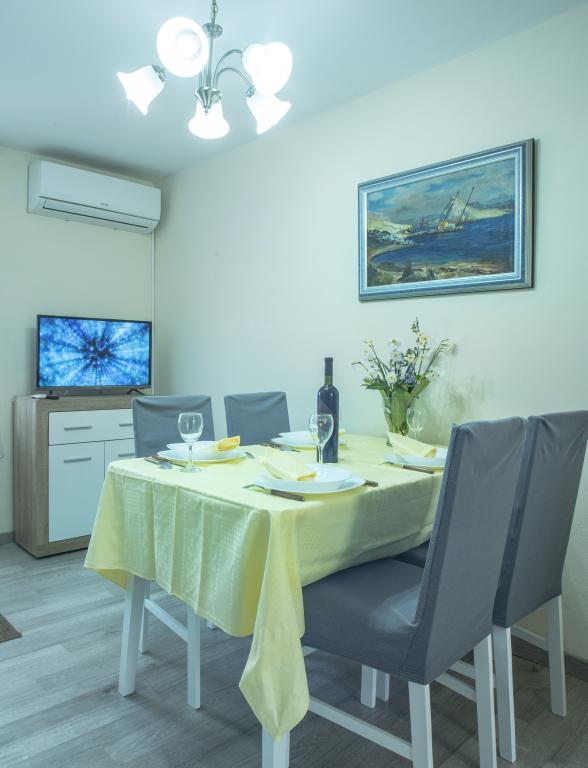 Apartments Karmelić er beliggende i en rolig del af Malinska, i umiddelbar nærhed af havet og en smukt anlagt strand, og kun 10 minutters behagelig gåtur til centrum. I bygningen er der en studielejlighed til 2 personer og en lejlighed til 4-6 til, Kategoriseret med 4*, fuldt udstyrede lejligheder med alt nødvendigt for hvile og nydelse. Værterne bor i nabobygningen og står til din tjeneste med deres venlighed og gæstfrihed, når du ønsker det. For alle lejlighedens gæster er der parkering inden for anlægget og gratis WI-FI, gratis brug af fælles vaskerum og ubegrænset brug af fælles grill i haven. Stranden på hotellet Malin ligger kun 3 minutters gang fra lejligheden, og byder på utallige faciliteter til afslapning og nydelse - lige fra parasoller og liggestole, barer, restauranter til vandsport, og børn nyder især stederne til leg og ubekymret svømning. Mange organiserede udflugter til steder på Krk og de omkringliggende øer, et væld af kulturelle og underholdningsbegivenheder vil gøre din ferie uforglemmelig.