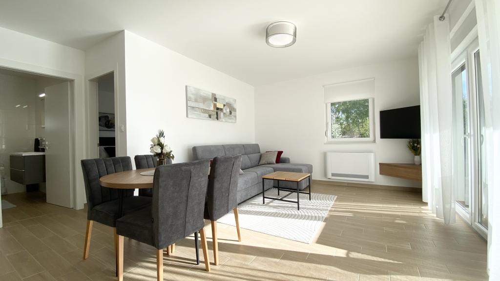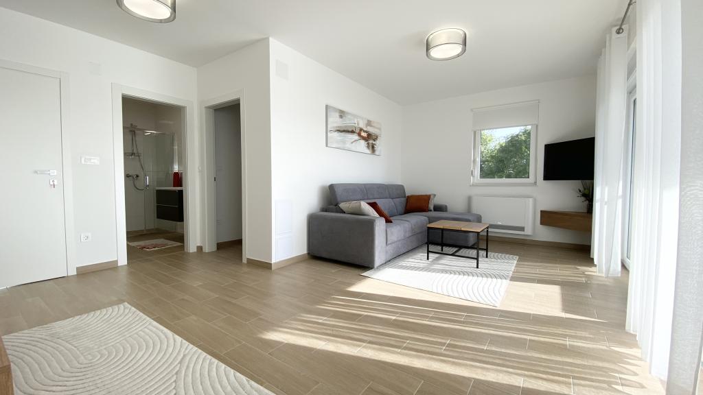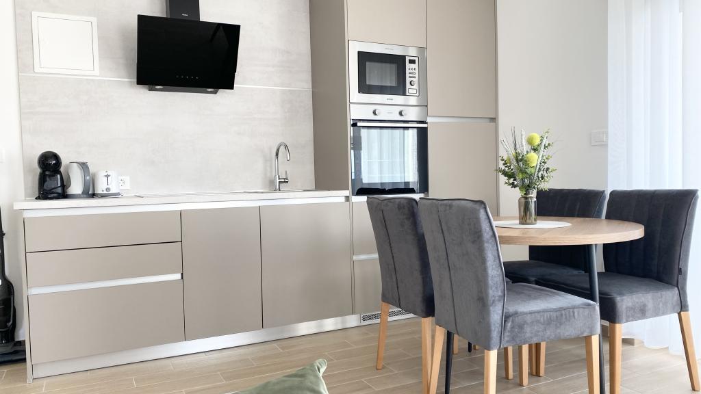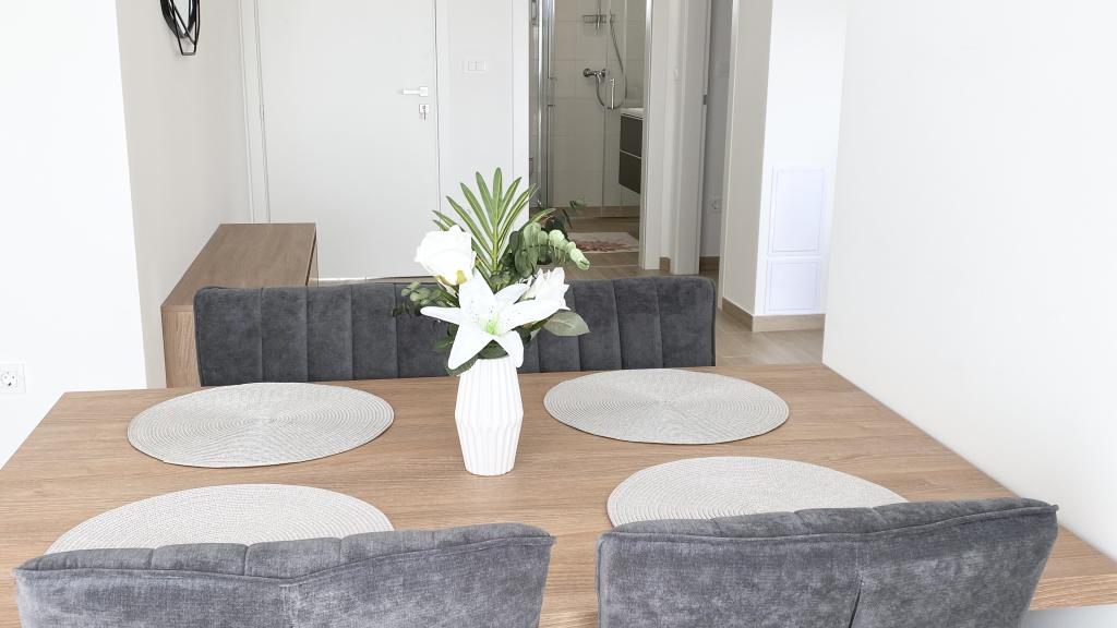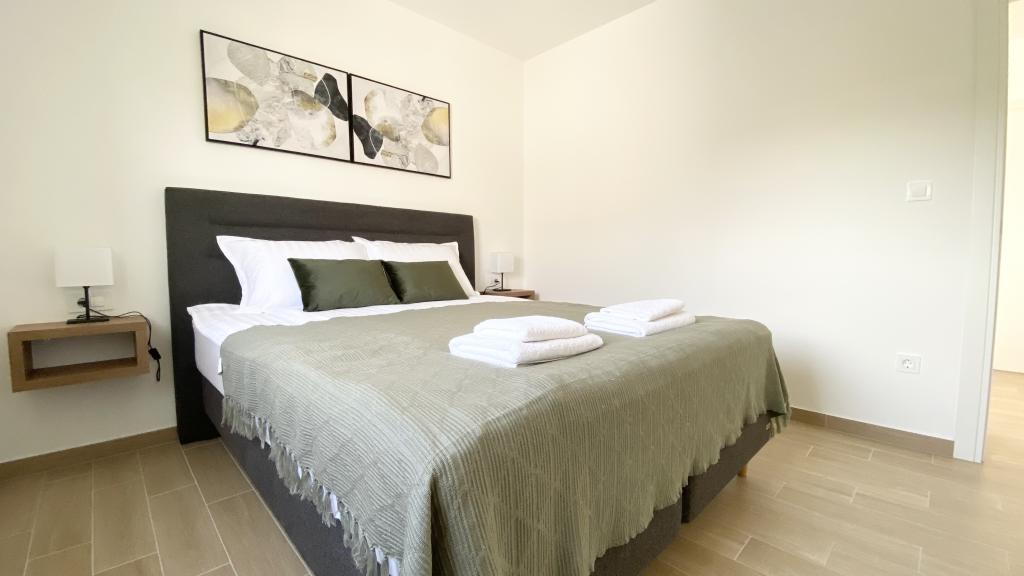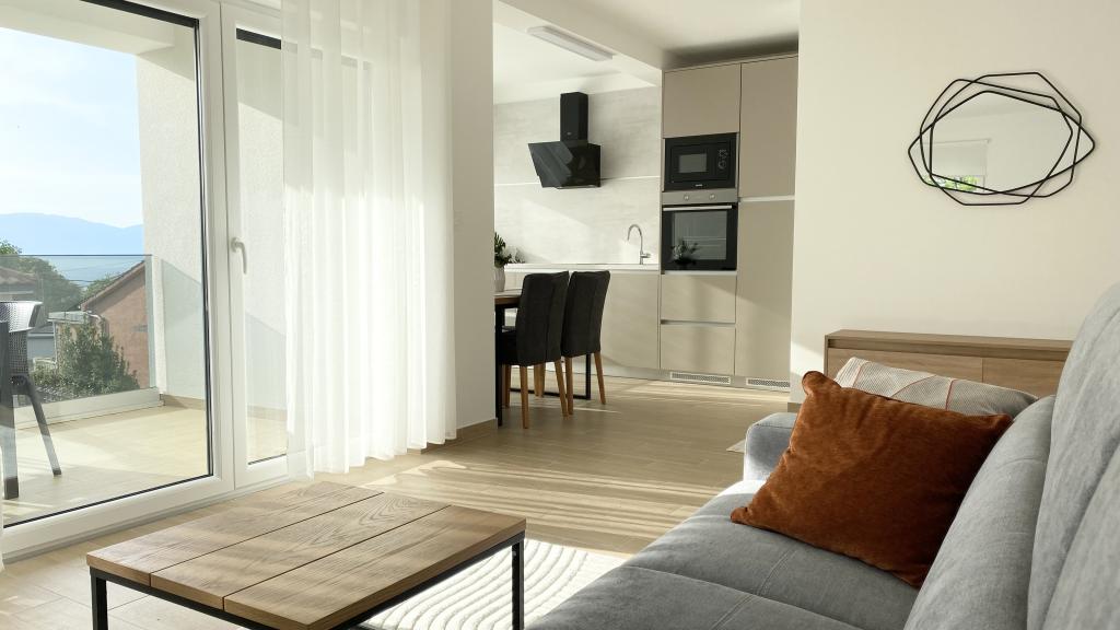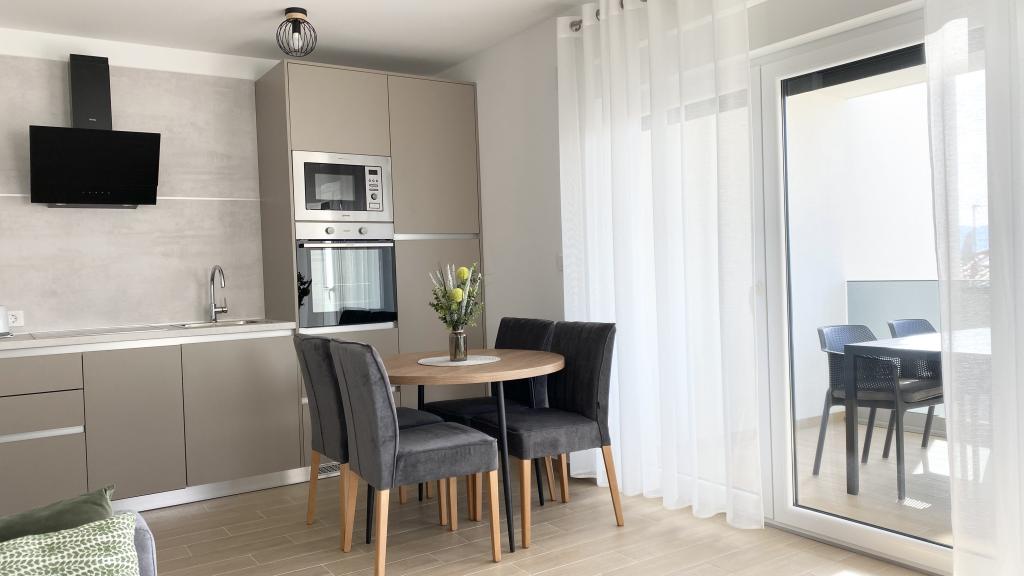 Villa Malina er et lejlighedskompleks beliggende i en rolig del af landsbyen. Det har tre moderne udstyrede lejligheder på 50, 55 og 60 m2 med separate indgange og sikre parkeringspladser i gården. Hver lejlighed har en stue, soveværelse, badeværelse, køkken og en overdækket terrasse. I stuen er der en sovesofa, der kan bruges som en ekstra seng til to personer. Køkkenet er udstyret med service, køkkenrulle, ovn, mikrobølgeovn, køleskab med fryser, elkedel, elektrisk komfur, brødrister og opvaskemaskine. Yderligere udstyr inkluderer internetforbindelse, aircondition, støvsuger, vaskemaskine og hårtørrer. En gratis barneseng er tilgængelig efter anmodning. Ved ophold på 10 dage eller mere tilbydes 10% rabat.