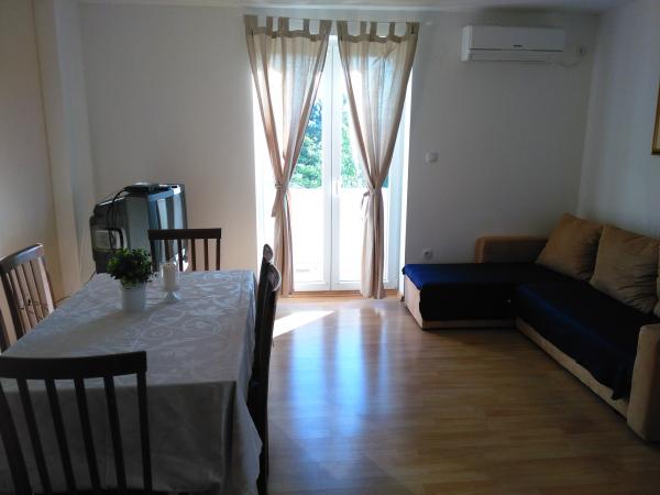 Nikolina lejligheder er beliggende i en rolig del af Malinska, rolig og blindgyde omgivet af natur. I nærheden ligger en restaurant med traditionel mad (350); butik er 400 m, strand 850 m. Alle lejligheder har et køkken udstyret med tallerkener og bestik til madlavning og køleskab, stue med satellit-tv, aircondition og gratis wifi-netværk. I nærheden ligger de gamle traditionelle landsbyer, gangbroer, cykelstier, museer og mange andre naturlige og kulturelle attraktioner. Rijeka lufthavn er 15 km (Krk), busstoppested 350 m (Bogovići), en banegård 45 km (Rijeka).