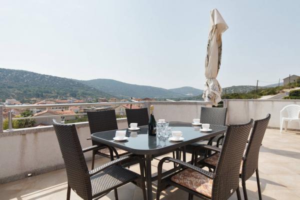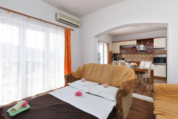 Fuldt udstyret og moderne lejligheder i en rolig del af den lille by Marina nær Trogir giver dig alt hvad du behøver til din ferie. Ejendommen er beliggende 7 minutters gang fra stranden, 150m fra byens centrum og 40 m fra butikken. Til Trogir har du kun 10 km og Split og Sibenik 30 km.