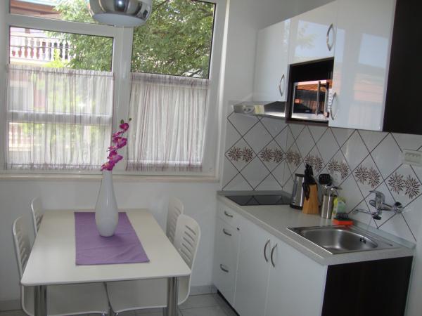 Super møbleret studio lejlighed, har alt hvad du virkelig har brug for en perfekt ferie med familien. Den smukke terrasse, altid i skyggen. Ejerne er altid til rådighed, føler virkelig jeg hyggelig familiær atmosfære. De tilbød os alle, så vi følte komfortable og super maksimum. Forberedt os savrešen frokost (igen mange tak for det). Alt, på billederne, du er ejer gjort en indsats og detaljer, vi alle objasio. Meget rent og godt vedligeholdt, renlighed er 10 :) Tjenesten fantastisk vært. Absolut anbefales til familier med børn. Alt er tæt, by, strand, legeplads. Og vigtigst af alt, ingen skarer på stranden, så der er ingen skubbe. Priserne på mad og drikkevarer i byen, på stranden er ganske reel, og ikke hævede. Marina er den perfekte ferie for folk, der har brug for fred og en dejlig familie ferie. Nærheden af store byer, men kan let og meget at se.