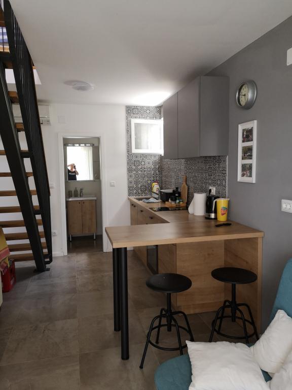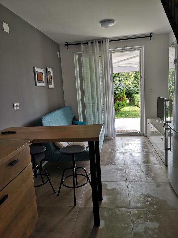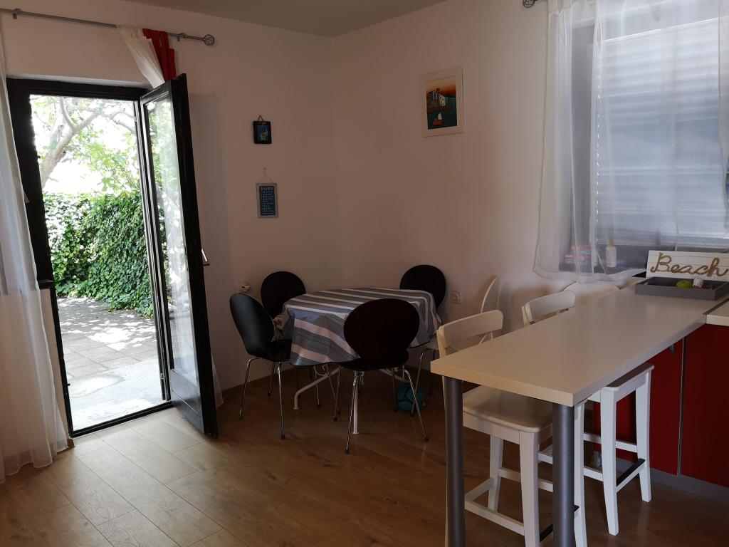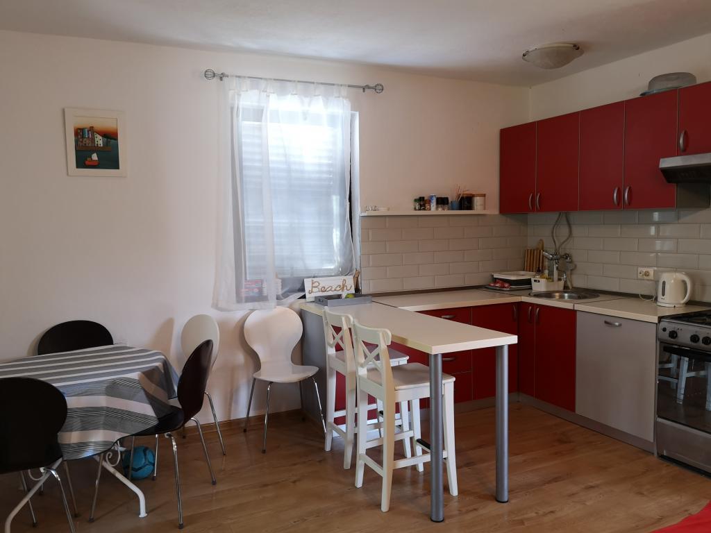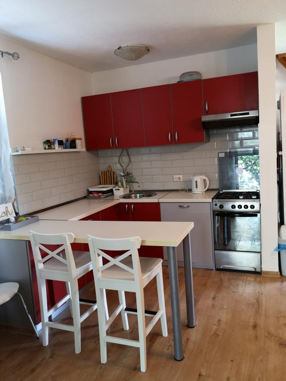 Huset på stranden, med en stor have og parkeringsplads, ideel for familier med børn. Ingen bekymringer, hvis du har glemt noget, eller du er træt af stranden, ved siden af dig til havet, og du kan nyde solen eller skyggen på din bekvemmelighed. Sommerhus ligger i hjertet af en lille fiskerby Poljica nær Marina og Trogir. Huset har et køkken, spisestue, badeværelse i stueetagen, som fører til terrasse med havemøbler. Ovenpå er der to soveværelser med seks senge og et toilet. Huset er fuldt udstyret til den mest behagelig ferie.