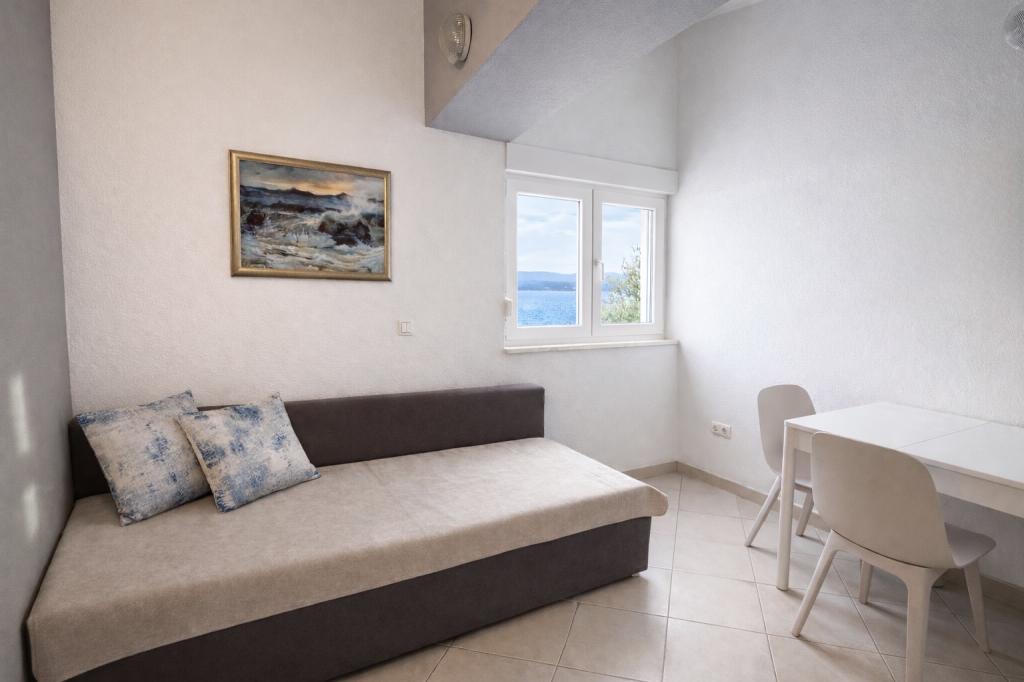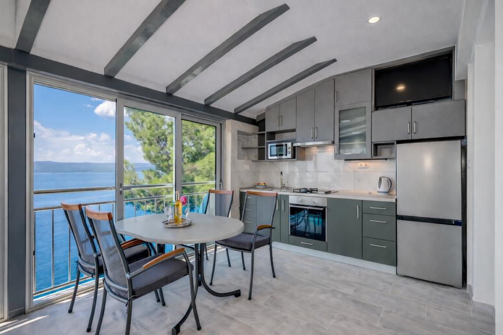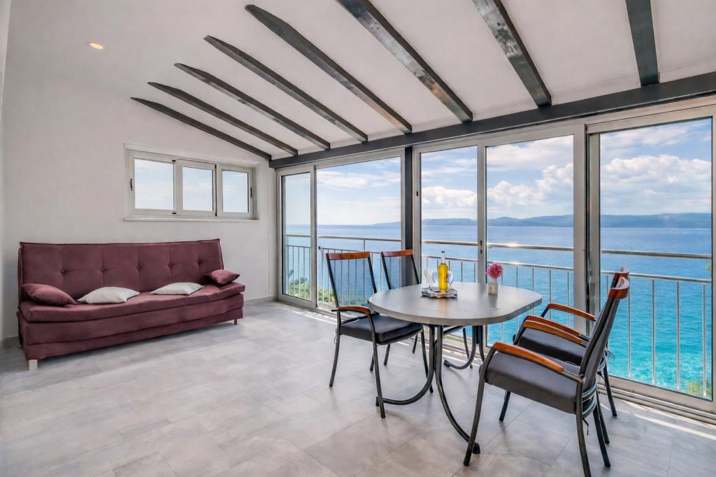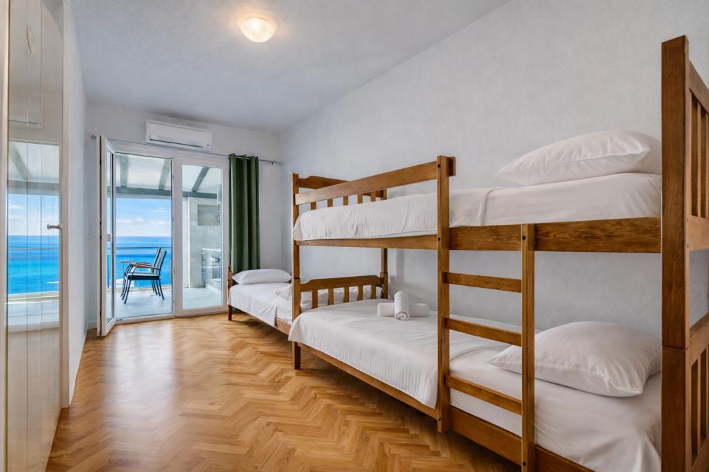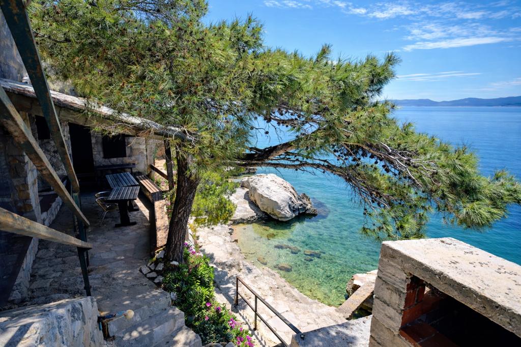 Et familiehus med 3 lejligheder ligger i den rolige landsby Marušići, ideelt for gæster, der søger afslapning, privatliv og nærhed til havet. Ejendommen ligger i første række til havet og er omgivet af grønne områder og tilbyder en behagelig atmosfære væk fra byens mylder. Huset er et fremragende valg for par, venner og familier, der ønsker en fredelig ferie med krystalklart hav og uberørt natur. På grund af trappen (ca. 200), der fører til stranden, er ejendommen ikke egnet til handicappede, babyer og ældre eller personer med nedsat mobilitet. Privat parkering er tilgængelig for gæster, hvilket sikrer en ubekymret ankomst og ophold.