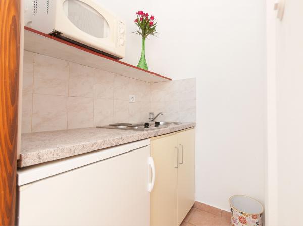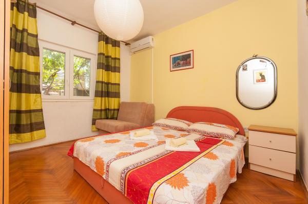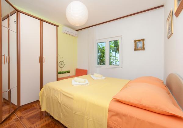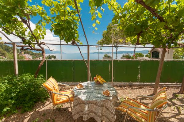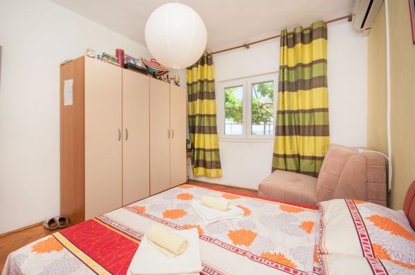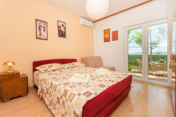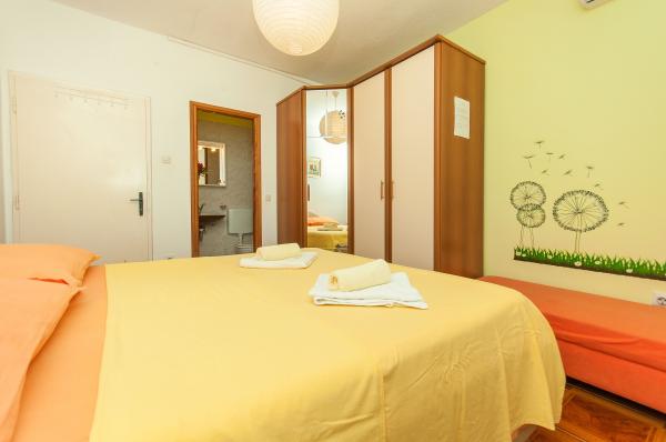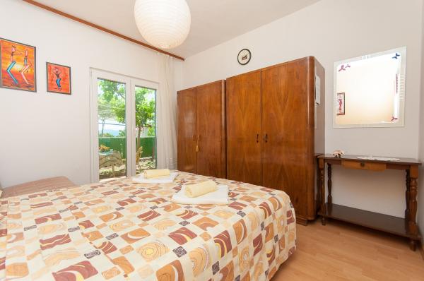 Lejlighederne er beliggende i en lille, rolig landsby, ideel til familieferier og uforglemmelige minder. Lejlighederne er placeret på den sydlige side af huset og har havudsigt. Afstand fra havet og stranden er 200 m. Den første lejlighed 4 2 består af et toilet, et køkken og to soveværelser, begge udstyret med aircondition. Køkkenet er placeret foran huset, så du ikke opvarme det område, hvor du bor. Andre lejlighed 2 1 består af et værelse med aircondition, toilet og køkken, som også er placeret foran huset. På sydsiden af huset er en stor have under en vinstok, der danner en naturlig skygge, med mulighed for grill. Der er gratis parkering på stedet. Indgangen er fælles. Værelserne ligger på sydsiden af huset, er et toilet til lejlighed 4 2 beliggende på tværs af lokalet på gangen. Wi-Fi er tilgængelig i hele ejendommen.