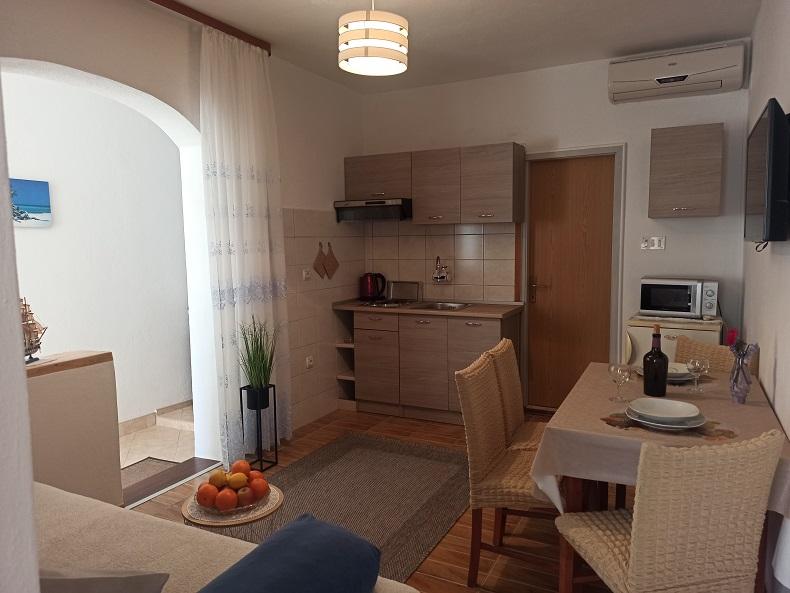 Komfortable lejligheder, moderne møbleret med havudsigt. De lejligheder, vi tilbyder, er: En 4-personers lejlighed med to soveværelser, moderne møbleret, udstyret med vaskemaskine, har to airconditionanlæg og en smuk havudsigt (på anden sal). En 2+2 (stueetagen) - nymøbleret lejlighed med et soveværelse og en sovesofa i køkkenet, har også en smuk havudsigt og en stor terrasse foran, komfortabel til fire personer. A2 - i stueetagen og A2 - på første sal er også komfortable til to personer og med havudsigt. Tæt på byerne Omiš - 11 km, Split - 36 km, Makarska - 23 km, Brela og Baška Voda 13 km - alle inden for kort afstand. Du kan også nyde kvalitetstid med en grill, hvor du kan tilberede lækre måltider til din familie, og der er parkering foran bygningen til alle gæster. Vi står til din rådighed for eventuelle spørgsmål.