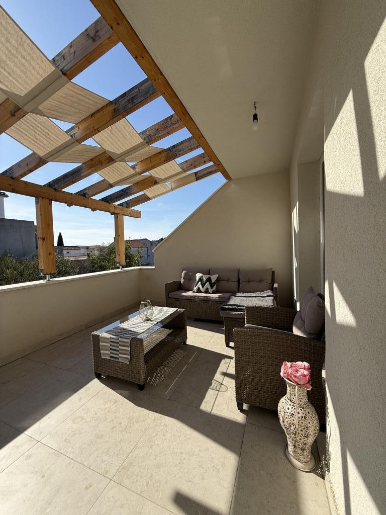 Studiolejlighed med en terrasse på 12m2. Lejligheden er designet til 2 personer. Stor dobbeltseng, fuldt udstyret køkken, spisebord, badeværelse. Terrasse og spisebord. Sikker parkeringsplads foran lejligheden til et køretøj. Tæt på stranden. Lejligheden ligger 5 minutters gang fra stranden Slanica og 7 minutters gang fra Murter centrum.