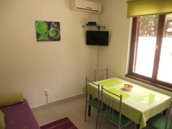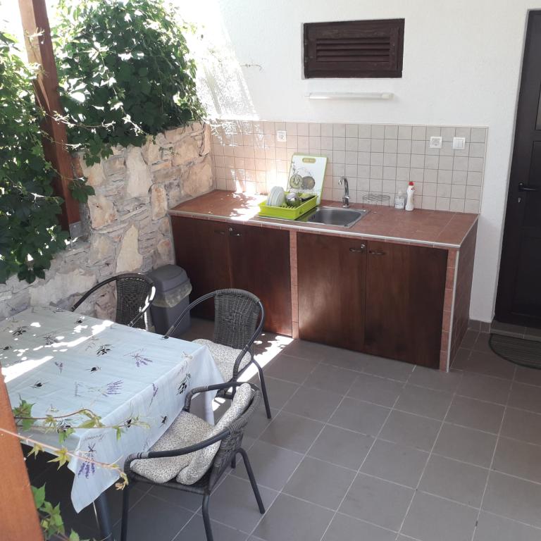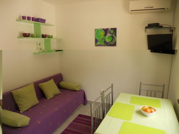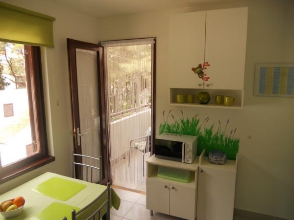 Den grønne lejlighed er til 4 til 5 personer med to soveværelser, en stue, et køkken, et badeværelse, en terrasse og en balkon. Lejligheden har også en balkon og en terrasse, hvor gæsterne kan spise udendørs i skyggen. Den blå lejlighed er til 4 personer med et soveværelse, en stue, et køkken, et badeværelse og en terrasse. Den blå lejlighed har også en opvaskemaskine. Lejlighederne er moderne, nyrenoverede og stilfuldt indrettede. De fleste møbler er nye og specialfremstillede til hver lejlighed. Stranden ligger 200 m væk og kan nås ved at gå gennem en fyrreskov. Der er ingen trafikeret vej i nærheden. Der er også en butik omkring 50 m væk, og en nærliggende restaurant ligger 200 m fra lejligheden. Andre faciliteter på stranden inkluderer et diskotek, flere caféer og et bageri. Ud over Nečujam anbefaler vi på Šolta at besøge Stomorska, Maslinica og talrige skjulte bugter.