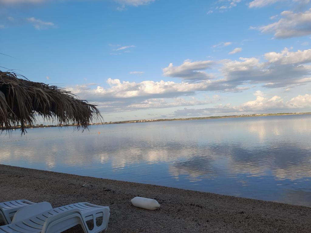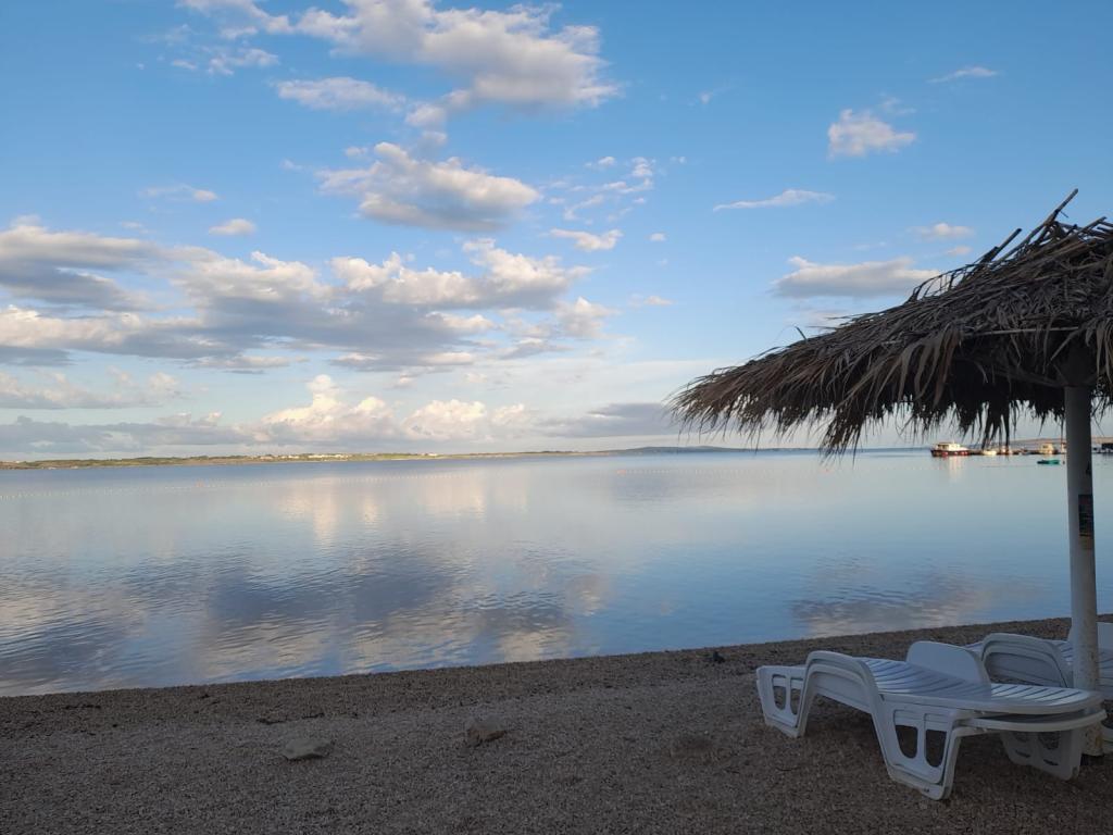 Lejligheden 'Idi pa Vidi' ligger i Vrsi, nær Nin (afstand 4 km), mens afstanden til Zadar er 23 km. Fra Zagreb er der 2,5 timers kørsel. Vi tilbyder 2 lejligheder med separate indgange. Vrsi kommune har 14 strande, mens den nærmeste strand ligger 320 m fra lejligheden. Strandene i Vrsi er for det meste sandede og småstenede (den mest berømte strand ligger nær Ričin). Inden for gåafstand er der et supermarked, marked, bageri, restauranter, slagterbutik og forlystelsespark. Huset ligger på en blind vej med en anlagt græsplæne og et udendørs brusebad og grill er tilgængelige for gæsterne. Lejligheden på første sal har en stue med terrasse og havudsigt og er opdelt i to etager. Første sal har 2 soveværelser (hvoraf det ene har en dobbeltseng, og det andet værelse med balkon har en køjeseng (med 2 senge) og et badeværelse, mens det 3. soveværelse (som også har et toilet) ligger på lejlighedens galleri. Lejligheden har plads til maksimalt 7 personer.