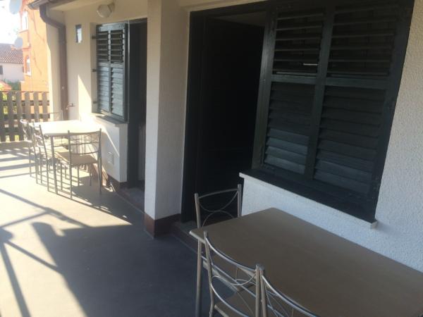 Lejligheder i en stille gade ligger kun 100 m fra havet. Hver lejlighed har en stue, soveværelse, badeværelse med toilet og en terrasse. Lejlighederne er lige og aircondition. TV med digital satellit og alle provinsielle programmer. Køleskab med fryser, kaffemaskine, grill i haven, fade, sengetøj. For gæster parkering. Venlige værter, fred og behagelig atmosfære. Ideel for familier med børn. Marked er kun 50m, lokale frugter og grøntsager. Nær den gamle kroatiske kongelige by Nin, Zadar attraktive destinationer, moderne turiststed Zaton, lufthavn, hospital, et væld af nationalparker (Kornati, Krka, Paklenica).