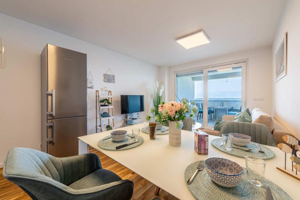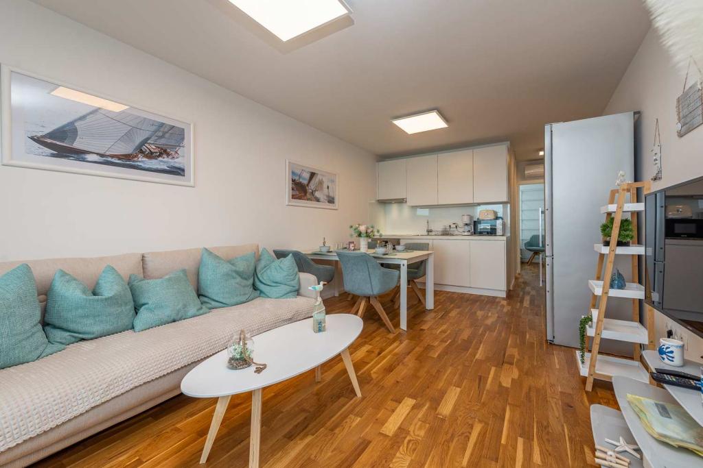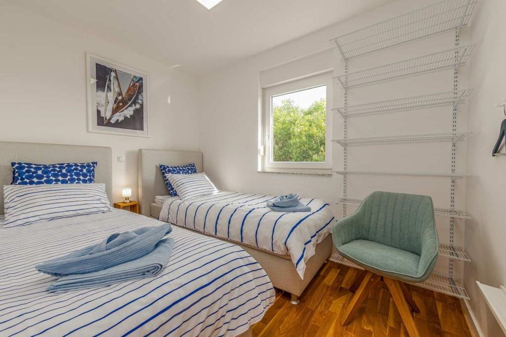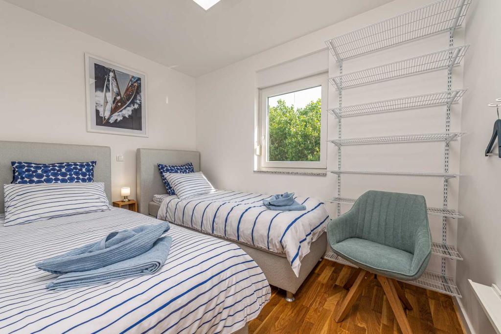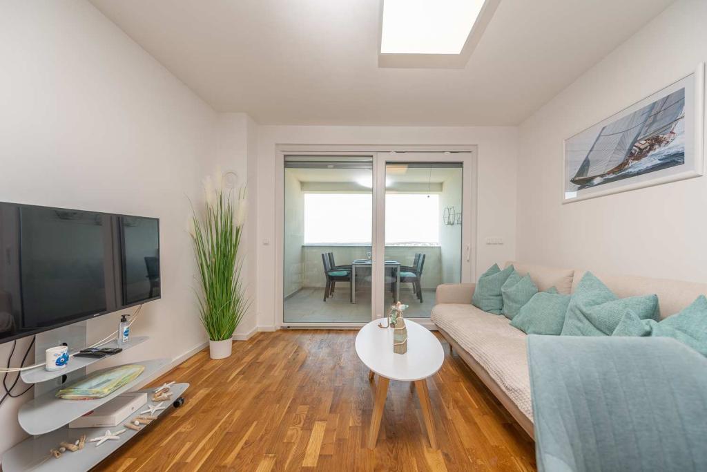 FØRSTE RÆKKE fra havet! 10 meter fra gågadestranden. 5 minutter fra den gamle bydel i Nin. Moderne lejlighed, pænt indrettet, meget veludstyret køkken (opvaskemaskine, brødrister, elkedel, elektrisk kaffemaskine, mikrobølgeovn, køleskab og fryser, ovn, 4 induktionskogeplader. 1 soveværelse med dobbeltseng + 1 soveværelse med 2 senge. bruser og vaskemaskine. Fantastisk havudsigt fra din terrasse.
