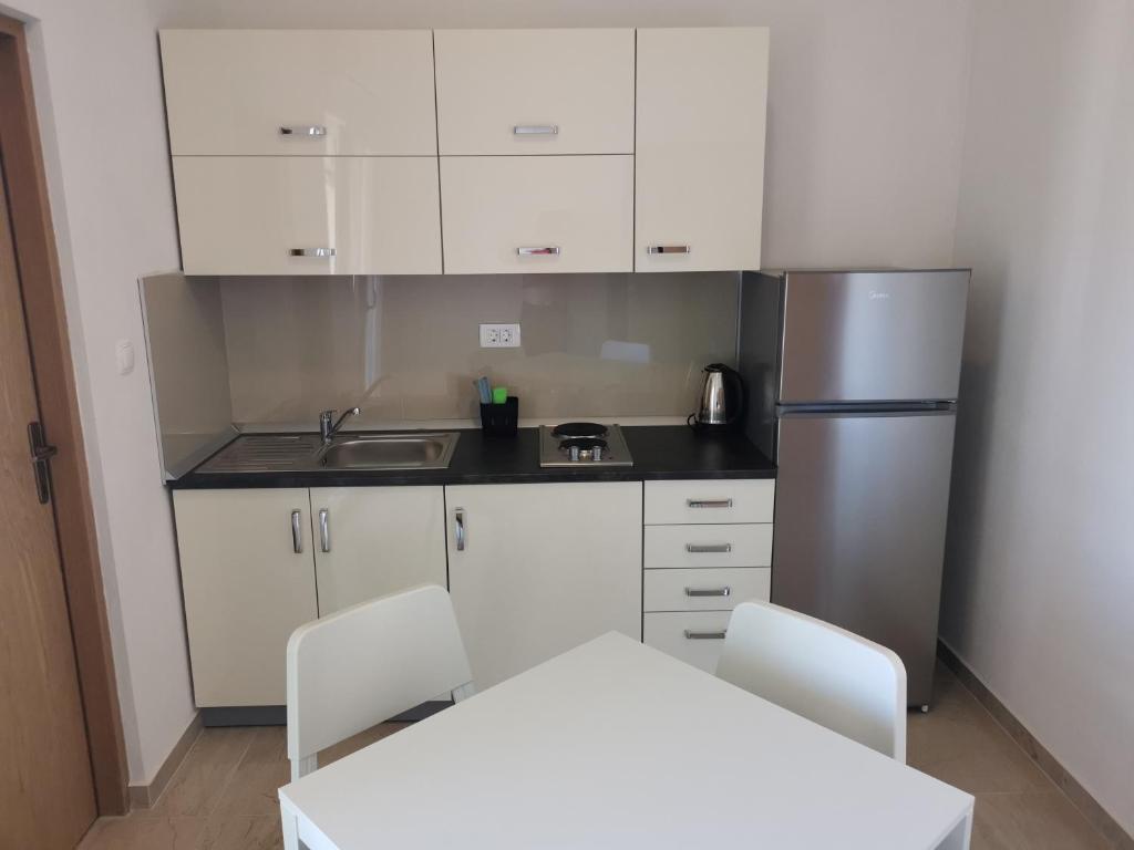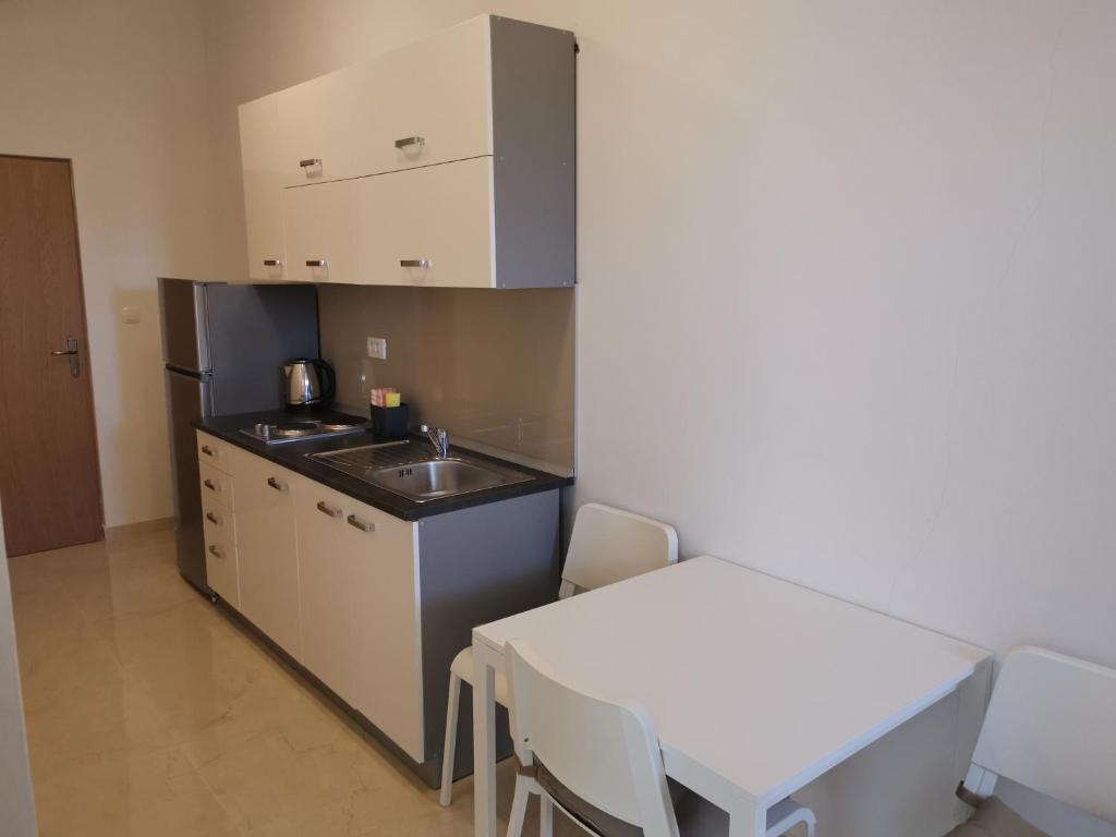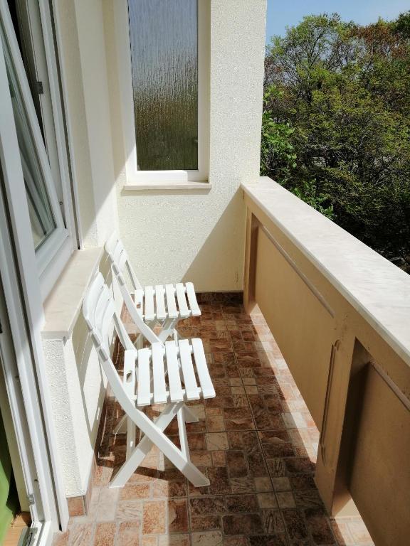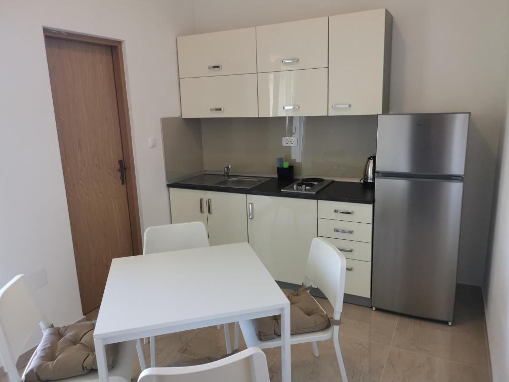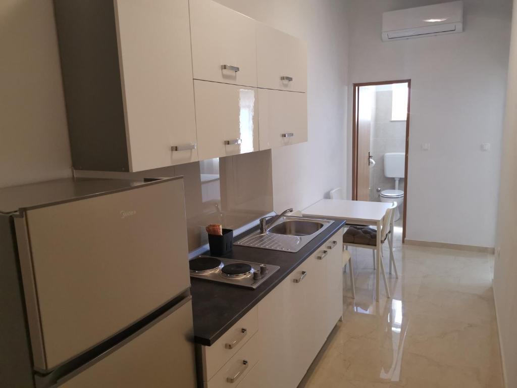 Familiehuset ligger i en rolig del af Nin, på vejen til Queen's Beach - Ninsko blato, hvorfra det kun er 5 minutters gang. Vores lejligheder med et soveværelse har aircondition og køkken, badeværelse, balkon eller terrasse med en smuk udsigt over havet og stranden. Øen (centrum) kan nås til fods, langs havet, og alle andre faciliteter er i nærheden (restauranter, butikker, posthus, bank...).