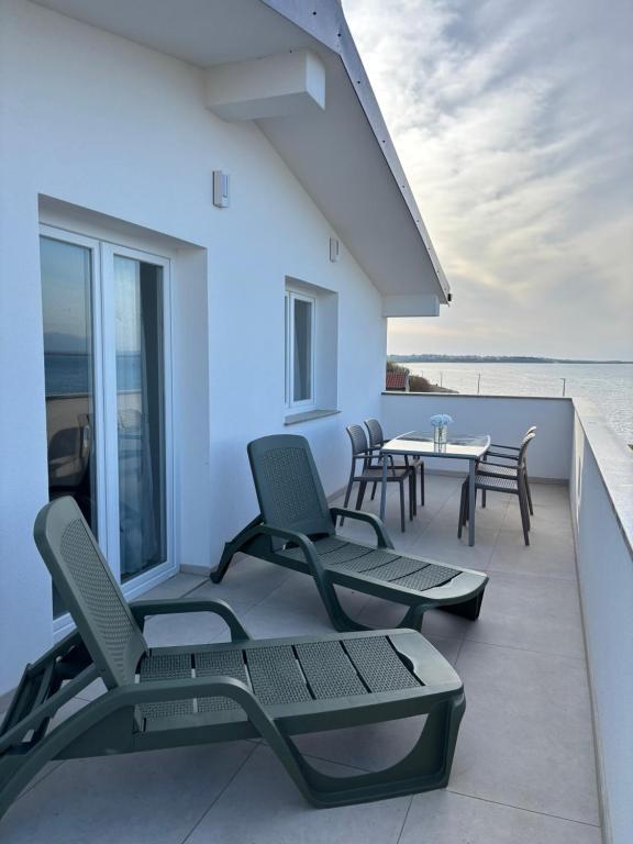 Turistskat er inkluderet i prisen.Rummelige og moderne lejligheder med panoramaudsigt over Nin-lagunen. Indkvartering ved havet Beliggenhed direkte ved havet for maksimal afslapning, badning og gåture langs kysten – uden behov for bil. Privat parkering og udendørs bruser Sikker parkering på stedet og en udendørs bruser – perfekt efter en dag på stranden, før du vender tilbage til lejligheden.