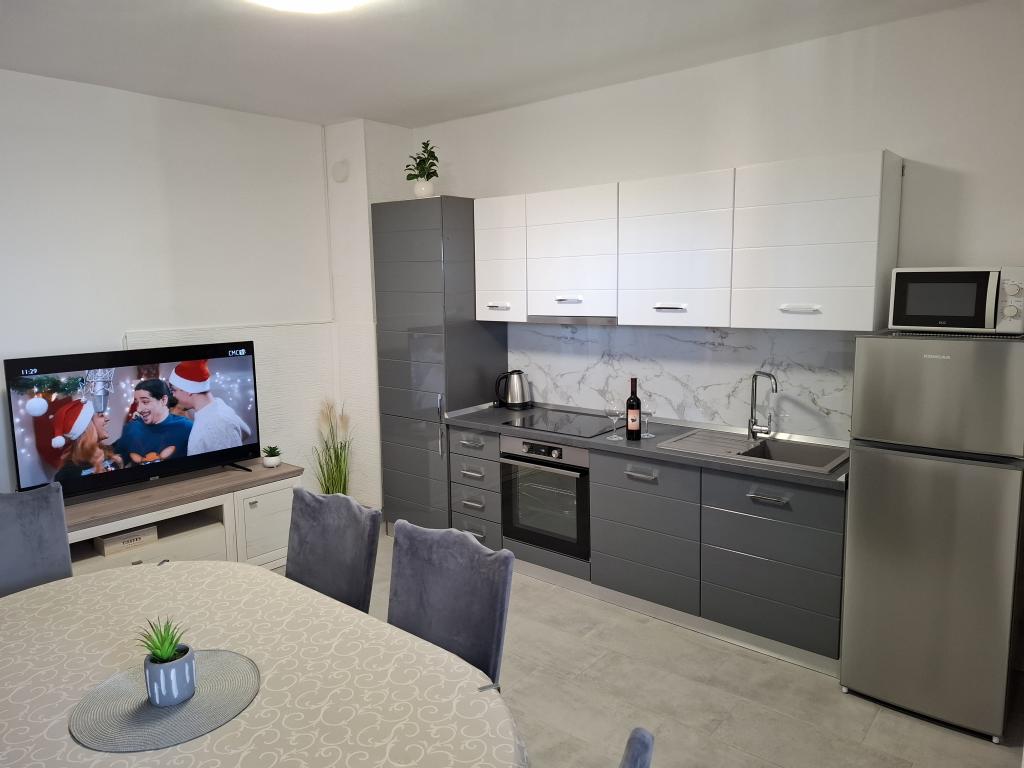 Apartments Tomislav er beliggende i byen Vrsi i et roligt og fredeligt område, ideelt til ferie, med en vidunderlig udsigt over havet, lejligheder med aircondition er 130m2, 100m2 og 90m2, rummelige og store, med store terrasser til afslappende sammenkomster , kom og nyd din ferie.