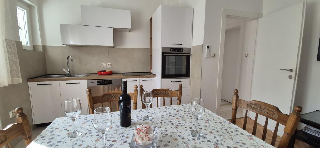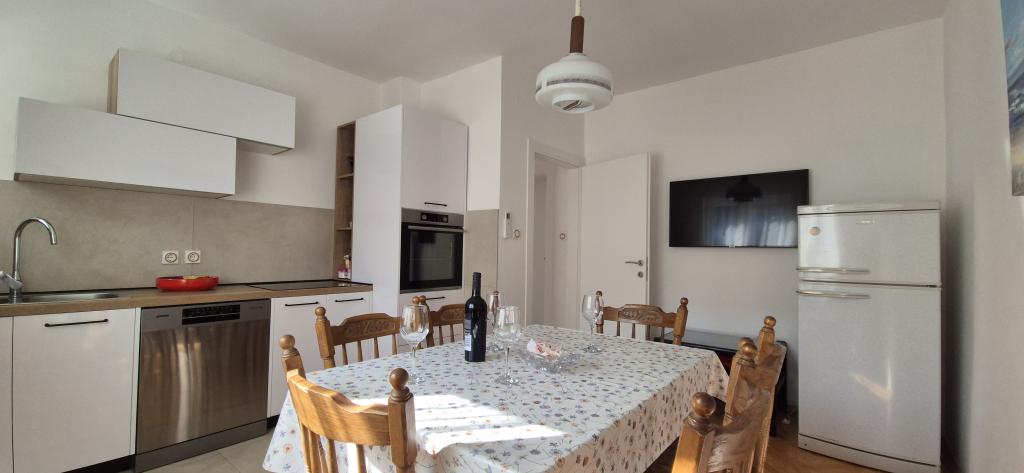 Turistskat er inkluderet i prisen.Et godt sted at slappe af, lejligheden er ren og har alt hvad du behøver for at fungere, ejeren, Darko, er sød og venlig, han tager sig af sine gæster, selvom der er en sprogbarriere. Man går ned ad bakke til stranden, men returen er desværre op ad bakke. Det er ærgerligt, at parkeringspladsen ved siden af lejligheden ikke har tag, for bilen er som en stegepande, og det ville også være rart med sikkerhed på trappen (en låge), så børn eller dyr kan' t klatre ned (eller falde) uden opsyn af voksne (men det er en detalje). Der er ingen ekstra gebyrer for kæledyr, hvilket gør lejligheden endnu mere attraktiv. Samlet set anbefaler jeg stærkt denne lejlighed.