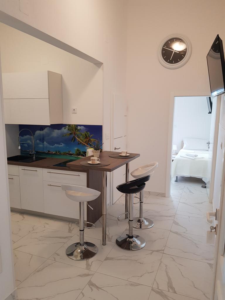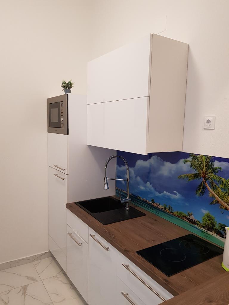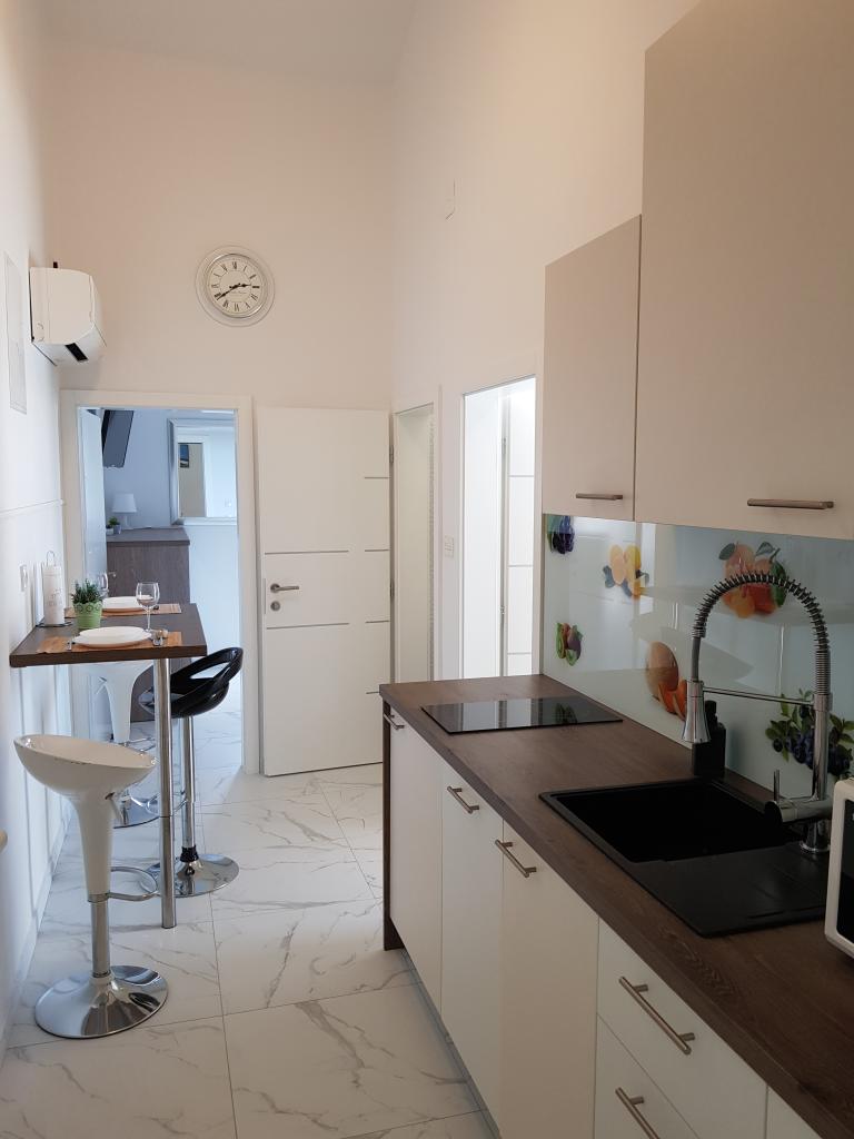 Moderne udstyrede lejligheder med fuldt udstyret køkken, elkedel, brødrister, mikrobølgeovn, kaffemaskine, strygejern, værdiboks og hårtørrer.