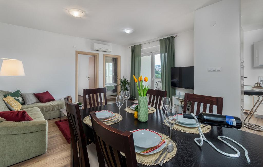 Velkommen til en fuldt og moderne udstyret komfortabel lejlighed (65 m2 - 1. sal) beliggende i byens roligste og bedst bedømte område (Kalvarija - Panos 30). Lejligheden ligger 5-7 minutters gang (300 m) fra den første strand (Bribirska obala), Marina Novi, butikker (Lidl) og restauranter og 10 minutters gang fra byens centrum. Denne lejlighed med aircondition har 2 soveværelser, en stor stue, 2 balkoner med en smuk udsigt over lystbådehavnen og byen, et fuldt udstyret køkken og et badeværelse med alle nødvendige apparater og køkken- og hygiejneartikler. Lejlighed Sanja har 3 stjerner og har gratis privat parkering samt gratis WiFi overalt på ejendommen. Afstanden til Trsat Slot er 40 km; 30 km fra Rijeka Lufthavn (Krk)..., Hvis du ønsker ægte afslapning, fred og ro, er lejlighed Sanja det rigtige valg for dig.
