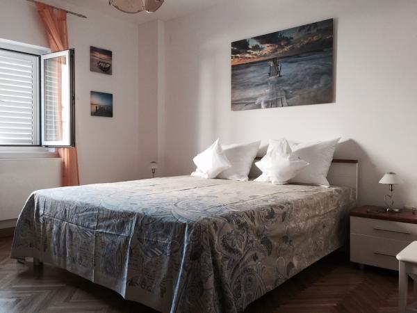 Fuldt luksus møblerede lejligheder i en rolig del af Novi Vinodolski. 300 m fra stranden (5 min gang) og 10 min gang til centrum. Mindre lejlighed ligger i stueetagen og store på første sal af huset. Det indre af det lille har et køkken, stue med sovesofa, badeværelse og soveværelse. Den store lejlighed består af et stort køkken, to badeværelser, store terrasser, altaner, stue og tre rummelige værelser med seks senge. Der er en komplet have med grill. Vaskemaskine på forespørgsel. Store rabatter i pre-season.