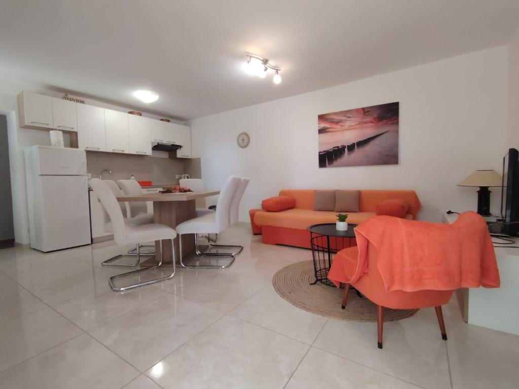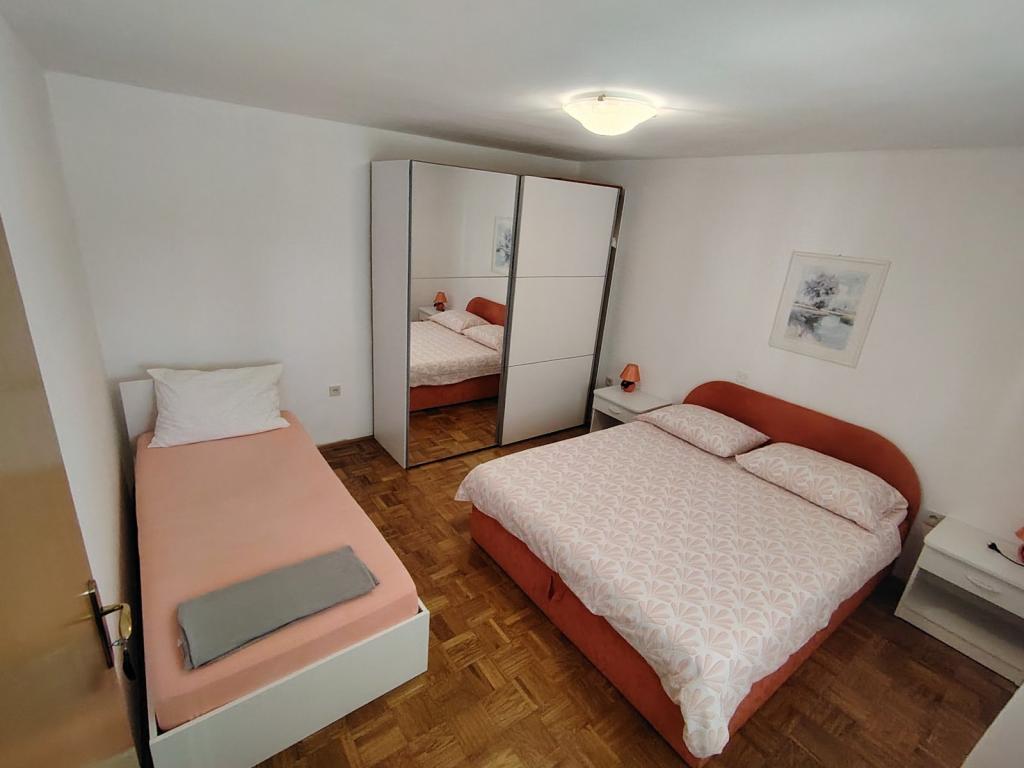 I et familiehus kun 300 m fra en smuk stenstrand og mange faciliteter er der to moderne indrettede lejligheder (6+3, 4+2). I stueetagen er der en lejlighed med 2 soveværelser, et badeværelse og et køkken med en spisestue og en stue. Der kan højst overnatte 6 personer. Kæledyr er velkomne. På anden sal er der en rummelig 3-værelses lejlighed med havudsigt. Der kan højst overnatte 9 personer. Kæledyr er velkomne. På adressen 22. lipnja 37 er der 2 lejligheder 4+1, i stueetagen i et familiehus. De er 350 m fra stranden.