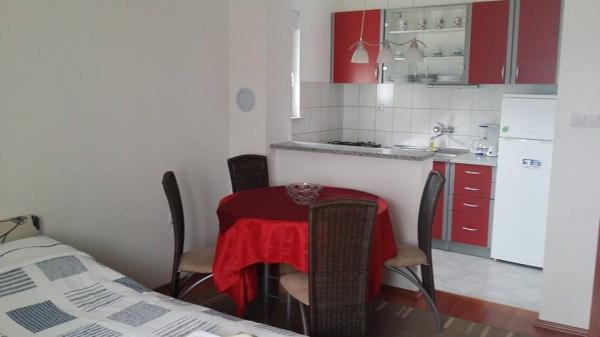 De nyrenoverede lejligheder nær centrum af Novi Vinodolski, 2 1 personer, tæt på stranden (400 m), komplet køkken, badeværelse, aircondition, tv, privat parkering. Lejlighederne er 30 m2 i størrelse, beliggende i en rolig del af byen, nær Konzum, DM, markeder, nærliggende restauranter og promenade. Det rene hav og pæn beton, grus og stijenovite strande med smukke bugter. Lejlighed (2 1 person) og en studio lejlighed udstedes til en pris på 35 € 1.1. til 1,7., og til en pris på 40 € 1.7. til 1,9. Prisen inkluderer skat. Pet Prisen er 5 € per nat.