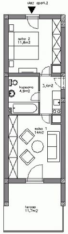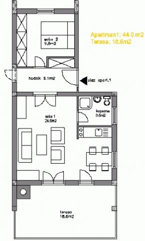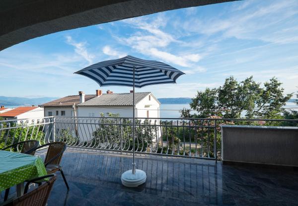 To-værelses lejlighed med en stor terrasse, i en rolig del af Novi Vinodolski, mindre end to timers kørsel fra Zagreb. Grill forhandles. Bemærk: Lejlighed 1 og Lejlighed 2 kan oprette forbindelse og dele. Ideel til to familier!