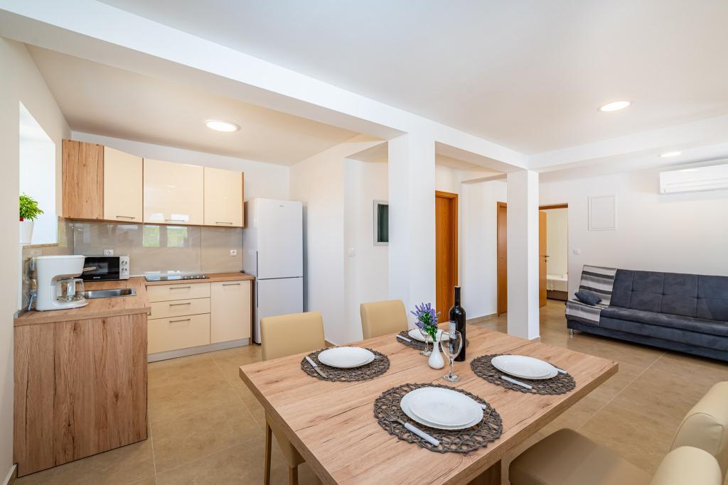 Charmerende feriehus i den historiske by Novigrad. Huset har en stor gårdhave med en rummelig terrasse til afslapning. Huset består af køkken og spisestue med rummelig stue og et soveværelse med dobbeltseng og enkeltseng. Anlægget ligger uden for centrum i et afsidesliggende område og er oplagt til en familieferie. Bygningen byder på en smuk udsigt over havet og Velebit. I en afstand af 20-120 km er der 4 nationalparker (Paklenica, Krka, Kornati og Plitvice-søerne). I umiddelbar nærhed er floden Zrmanja, som vil fortrylle dig med sin skønhed.