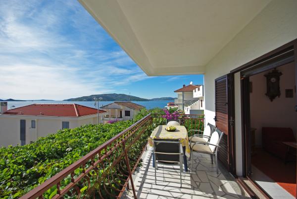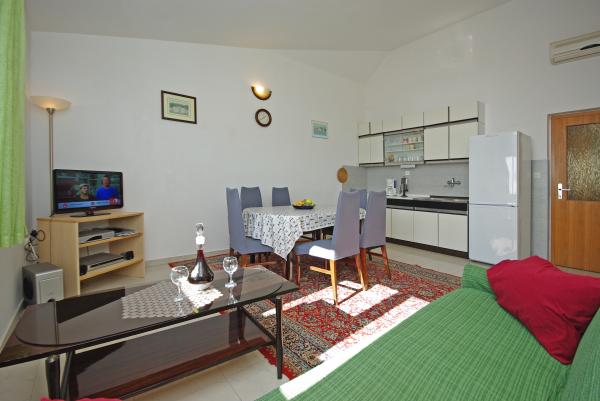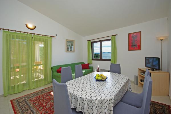 Privat hus beliggende i den sydvestlige del af Ciovo Island i et roligt område. Afstand fra nærmeste strand 50 m. Grusstrand egnet til små børn 300 m væk. Lejlighederne er moderne udstyret, herunder aircondition, vaskemaskine og gratis trådløs internetadgang. Begge lejligheder har rummelige balkoner med en fantastisk udsigt. Den nærmeste købmand og restaurant ligger 5 minutters kørsel derfra