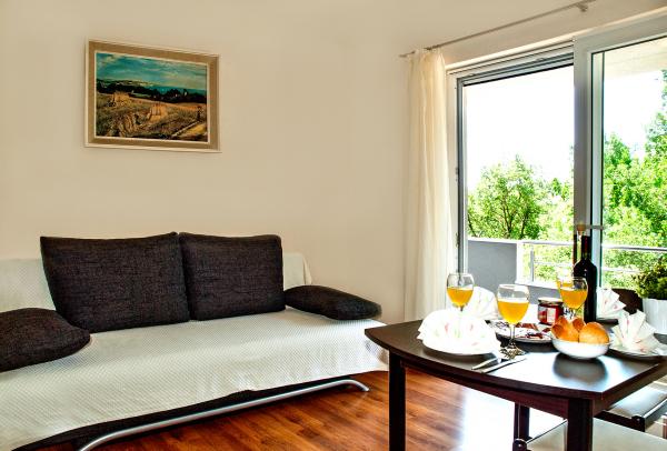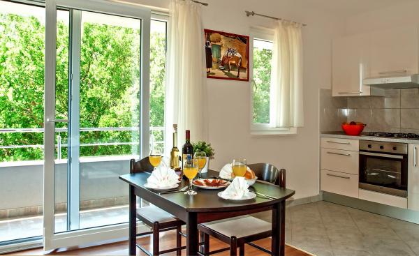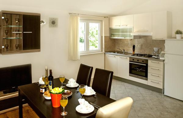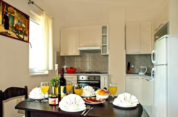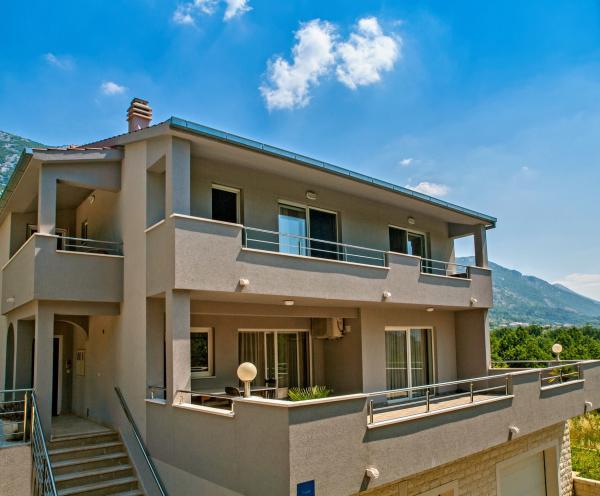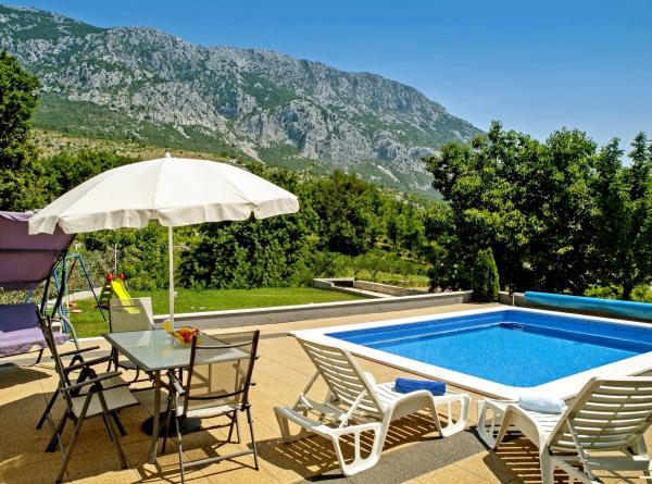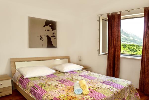 Villa Antoni ligger i den fredelige landsby Gata i det naturlige, landdistrikter og bjergområder kun 10 minutters kørsel til stranden og en lille middelhavsby Omis. Ejendommen indeholder to lejligheder, som vi tilbyder som en enkelt enhed med en privat pool. Overnatning er indrettet til et maksimum på 10 personer (6 4) Det er et moderne hus, nybygget og godt udstyret, og lejligheden ligger på første sal og ental tilbydes. For at lette forståelsen af rumlige organisation, vi Lejlighed nr 2 og nr Lejlighed 1: Lejlighed nr 2 (4 2 personer) har to soveværelser (et værelse med en dobbeltseng og et med 2 enkeltsenge), stue med sovesofa, køkken og badeværelse. Lejlighed nr 1 (2 2 personer) har et soveværelse med en dobbeltseng, en stue med sovesofa og et køkken og badeværelse. I stueetagen er et værelse med træningsudstyr med badeværelse, også for gæster. Lejlighederne har to altaner og en terrasse, og en privat udendørs swimmingpool, som har en termisk tæppe til at opretholde en behagelig temperatur.