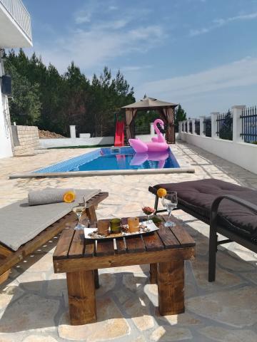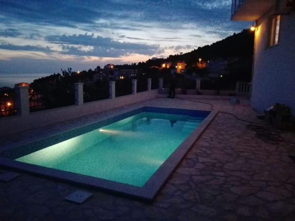 Velkommen til privat indkvartering i familiehuset Bernard i Stanići, 4 km langt fra Omis. Huset med 2 lejligheder ligger på en stejl kyst, der tilbyder en smuk udsigt over havet, øerne og swimmingpoolen. Stedet er roligt, ideelt til familieferier. Centret på stedet med to butikker, pizzeria og restaurant ligger 400 m væk. Huset med to lejligheder med swimmingpool til 8 2 personer i fredens oase og legeplads giver dig en uforglemmelig ferie.