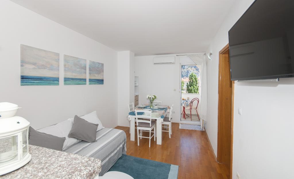 Apartment Luna *** er beliggende i den nye del af Omis, kun 7 minutters gang fra centrum af den gamle bydel og sandstranden. Lejligheden er fordelt på 60 m2, nyrenoveret og indeholder 2 soveværelser, stue, køkken, et badeværelse og en balkon med udsigt over floden og havet. På grund af sin interne organisering af plads og værelser er den ideel til familier med børn, par og en gruppe venner. Lejligheden er velegnet til i alt 6 personer: den har to dobbeltsenge (180x200 cm og 140x200 cm) og en sovesofa (160x200 cm). I lejligheden finder du alt hvad du behøver for et behageligt ophold: aircondition, gratis internet, satellit-tv, vaskemaskine, udstyret køkken. Lejlighed Vinko *** er beliggende i en lille landsby Kučiće 13 km fra Omis. Den består af tre store soveværelser, to køkkener, to toiletter, tre altaner og en overdækket terrasse med grill, privat parkering til to biler.