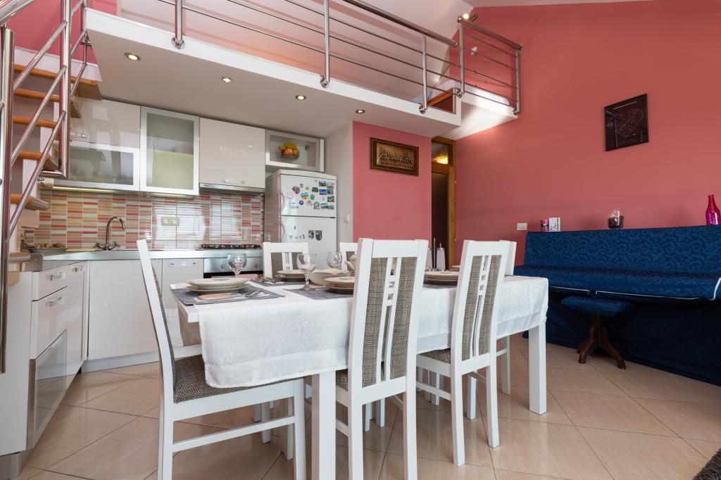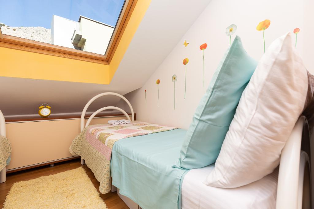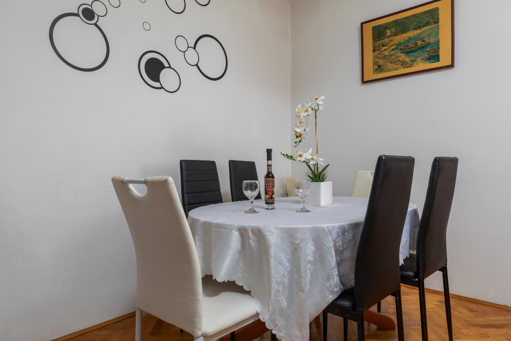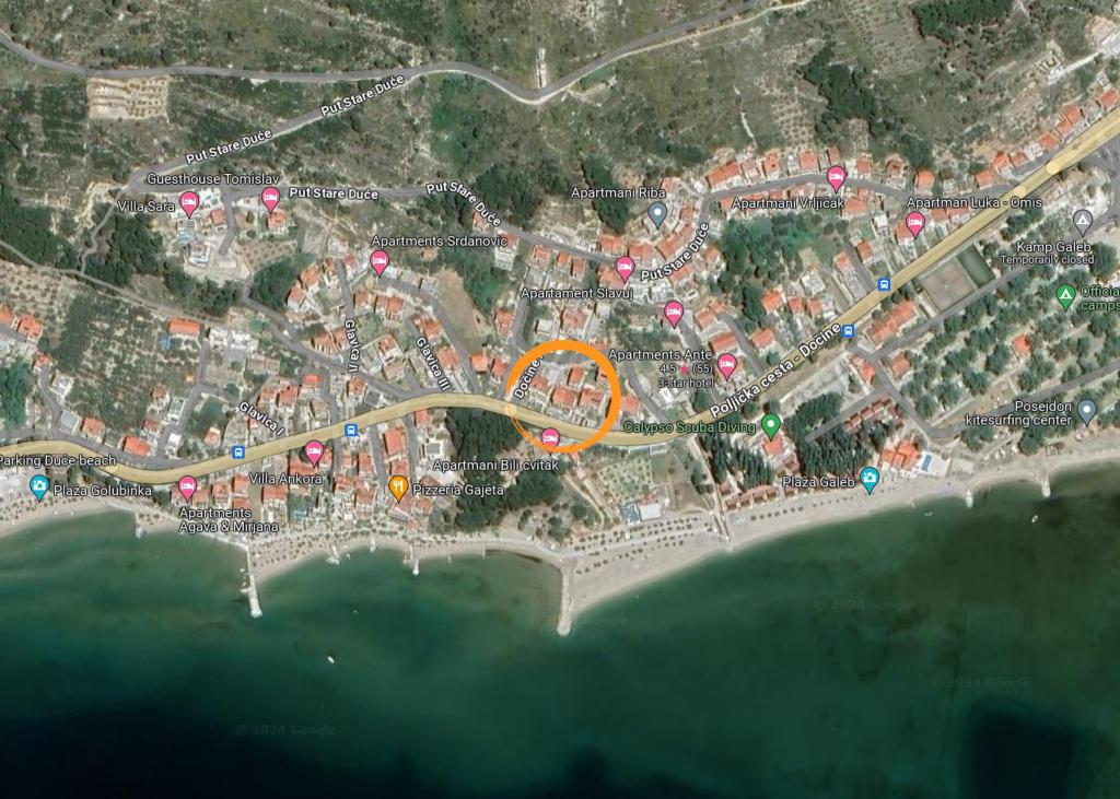 Lejlighed A7+1 ligger i Omiš, på Četvrt ribnjak 13. Den har 4 soveværelser, en stue, et køkken, to badeværelser med bruser, en balkon med en smuk havudsigt. Den ligger tæt på stranden og Omiš centrum. Lejlighed A5 ligger i Omiš, på Četvrt ribnjak 13, tæt på stranden og Omiš centrum. Den har to soveværelser, et køkken, et badeværelse, en stue og en terrasse.