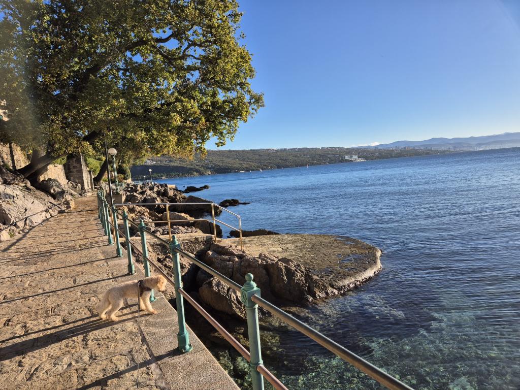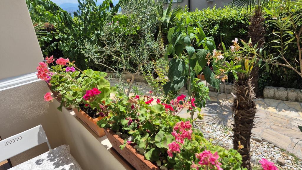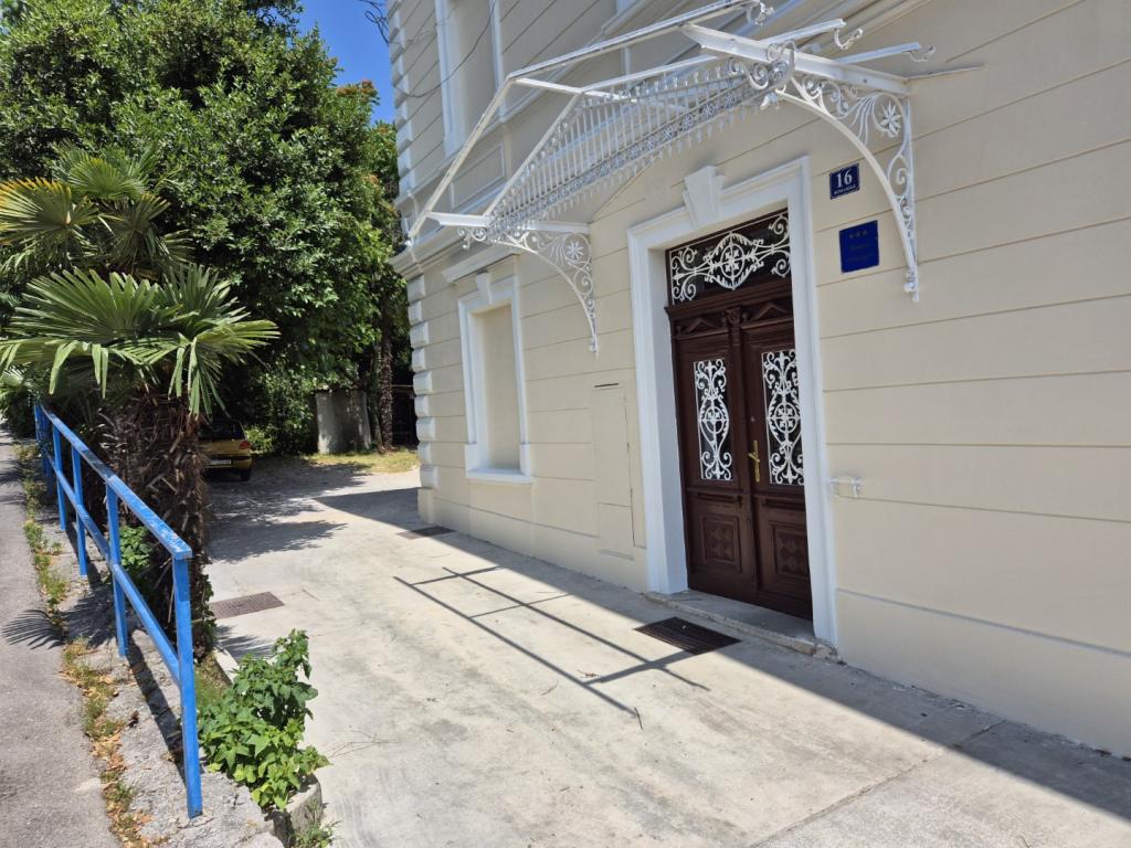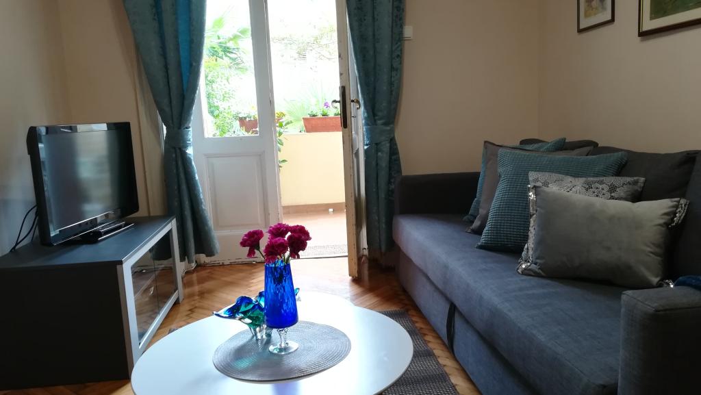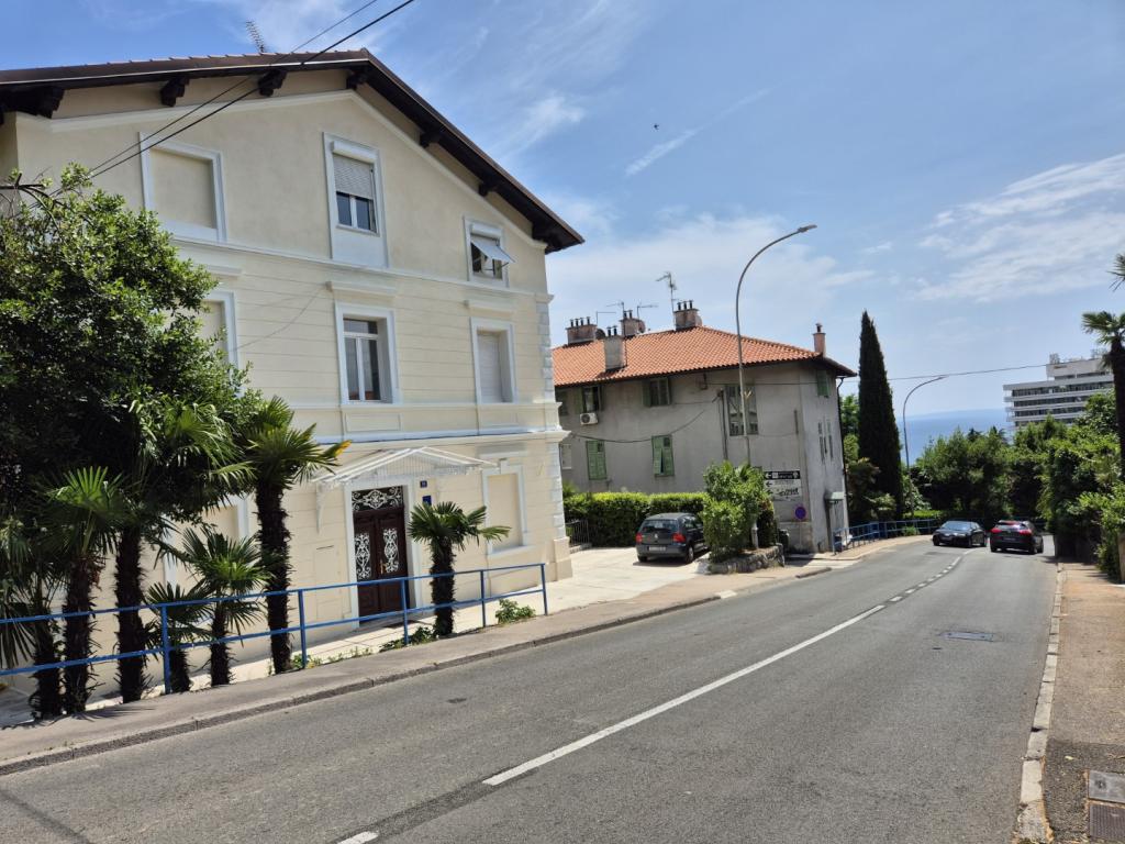Charmerende lejlighed i en gammel villa i centrum af Opatija. Lejligheden ligger 300 meter fra havet og stranden. Den er meget rummelig og er på 58 kvadratmeter. Den har en overdækket balkon med udsigt over havet, og på den anden side af huset er der udgang til haven, hvor man også kan opholde sig, og hvor der er et bord og stole. Lejligheden er en af de få i centrum af Opatija, der har gratis privat parkering. Opatija-markedet ligger 400 meter væk, og Spar-supermarkedet ligger 150 meter fra lejligheden. Lejligheden har plads til maksimalt 5 personer. Soveværelset har en stor dobbeltseng og en enkeltseng. Der er en sovesofa i stuen. Køkkenet er rummeligt og fuldt udstyret.