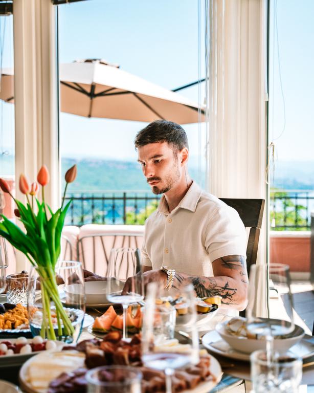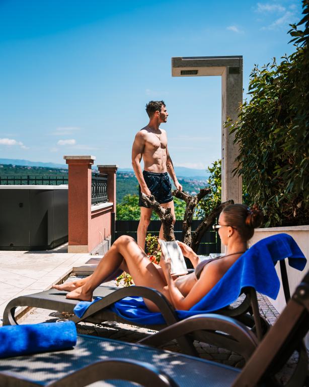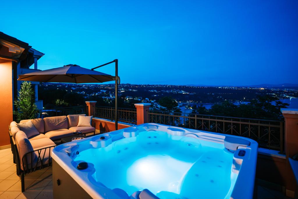 En smuk og moderne lille perle beliggende på Opatija Riviera. Huset er nybygget, så alt er næsten som nyt. Indretningen er meget smuk, og den er designet af min kone Alexandra, en indretningsarkitekt. En af de mest fantastiske ting i dette hus er den 180-graders udsigt fra terrassen til Kvarner-bugten, Istriens kyst og øerne Krk og Cres. Rent betagende. Et fotografi kan ikke formidle skønheden i udsigten. Solopgange og solnedgange er specielle, og middage på terrassen er nogle af dagens smukkeste øjeblikke. Du vil sove som en baby, for om natten er det meget stille og behageligt, og der kommer en let brise fra havet om natten. Alle værelser har aircondition. Det er også vigtigt at nævne de super komfortable senge i alle rum, og indendørs og udendørs jacuzzi og bruser på terrassen med en smuk udsigt. Opatija Riviera er kendt for sit mikro-middelhavsklima. Rivieraens byer strækker sig fra fiskerbyen Volosko, som kun ligger få minutters gang fra huset, til den smukke Opatija, som kan nås til fods. En af de ting, du skal nyde, er promenaden langs Lungomare-havet, som er omkring 15 km lang. Langs promenaden kan du finde en række små strande og små bugter, hvor du kan bade, blandet med storslåede paladser, der daterer sig tilbage til Østrig-Ungarns tid. Huset ligger ca. 400 m fra flere strande i Volosko. Vandet er meget rent og turkisblåt. Mange steder på Rivieraen ligger en kort køretur derfra og byder på mange gastronomiske oplevelser. Dagligvarebutikkerne i nærheden har et stort udvalg af mad, herunder fantastisk brød, lokale vine, råvarer og kød. Toprestauranter ligger også få minutters gang fra huset. Maden er fantastisk, især udvalget af fisk. Der er et marked for frisk fisk og grøntsager i nærheden.