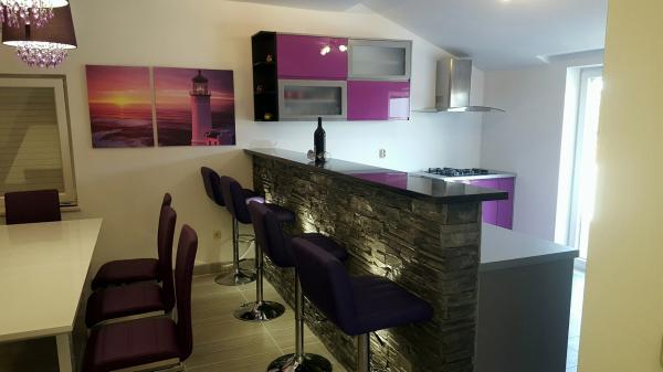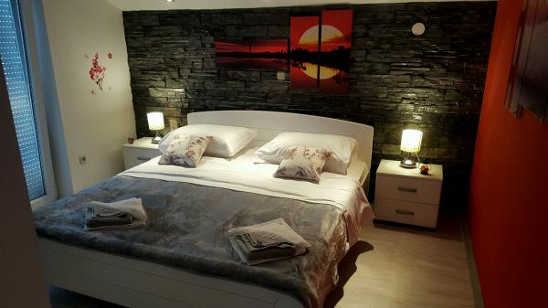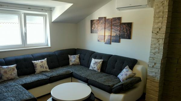 Lejligheden er beliggende i et roligt område med ingen veje og væk fra den vigtigste Piaz 150 m fra alle vaznijh faciliteter inden for 1000m. Lejligheden er moderne indrettet tilbyder en masse indhold fra fitnesscentret bordtennis Børns park til en omgang udendørs grill og en rasteplads. Overdækket parkering for en bil hver pensionat tilbyder 500m2 af forskelligt indhold på brug af gæster. generel Huset er omgivet af natur.