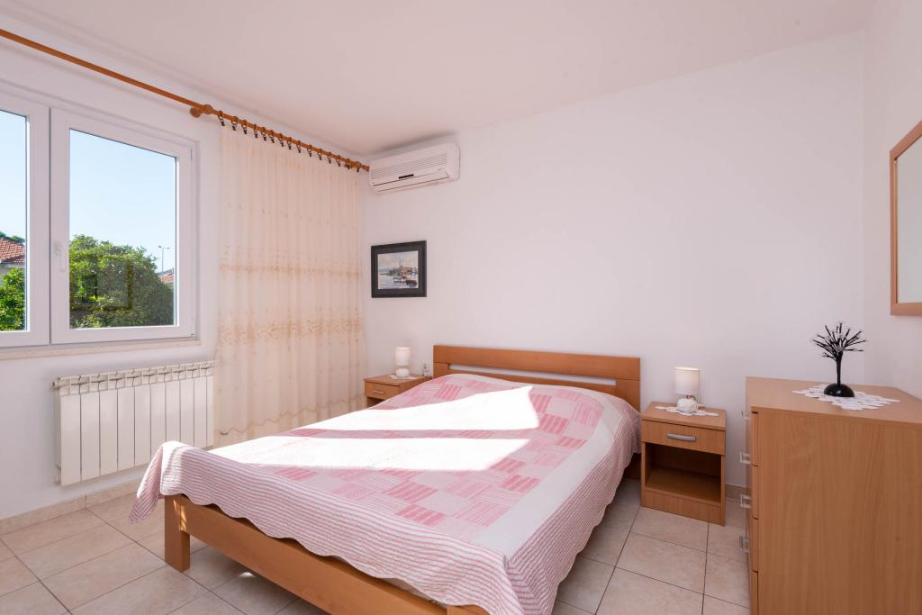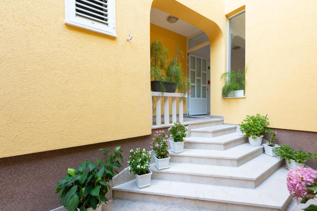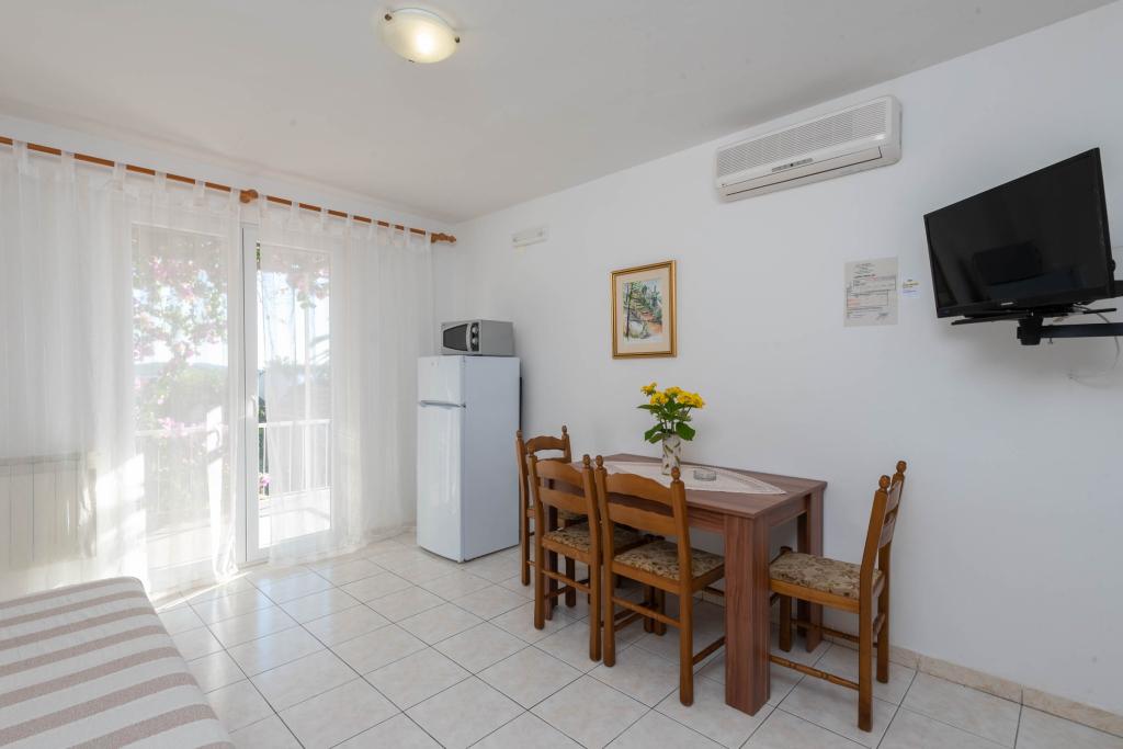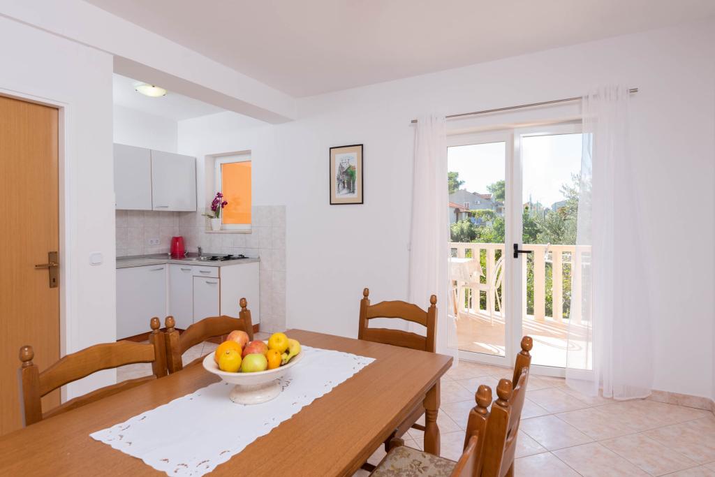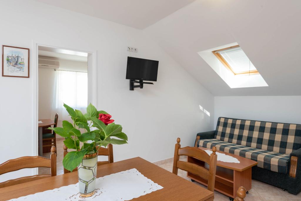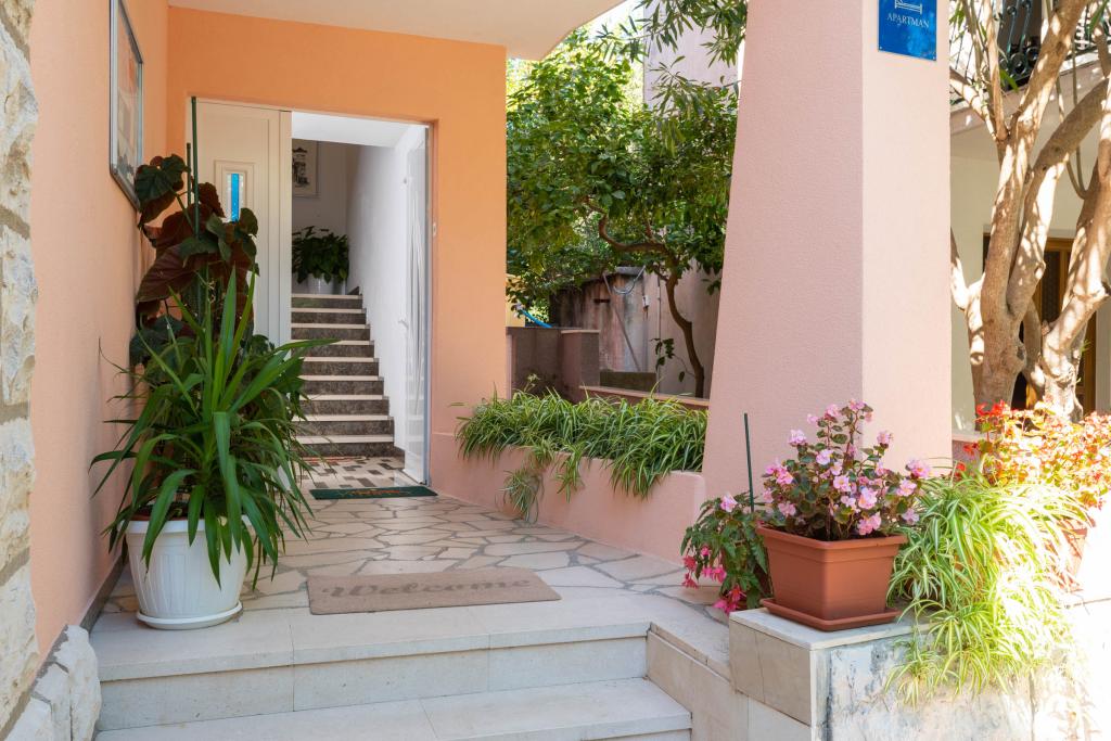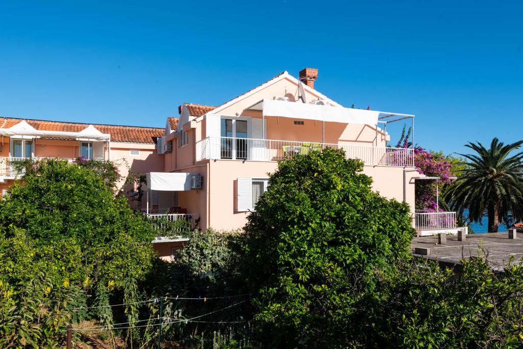 "Villa Melita" ligger lige ved havet, langs en rolig promenade. Dette sted er især velegnet til alle, der har brug for en pause. Huset har en smuk have med middelhavsvegetation, hvor der er en swimmingpool med liggestole. Der er også en grill til rådighed. Vores private parkeringsplads er også i nærheden. Alle vores lejligheder har aircondition, gratis WiFi, satellit-tv, et fuldt udstyret køkken, et badeværelse og en privat terrasse. Badehåndklæder og sengelinned er også inkluderet. Huset ligger i gåafstand fra adskillige restauranter, caféer, butikker og bagerier til alle dine daglige behov. Vigtigst af alt, den største bystrand Trstenica ligger kun 40 meter væk.