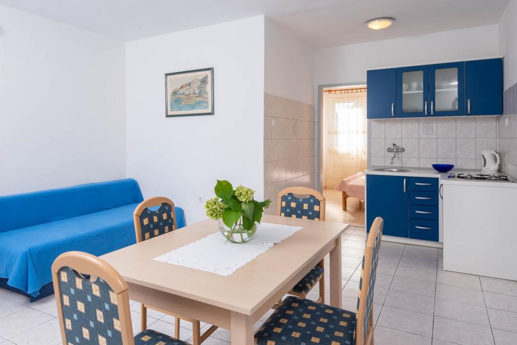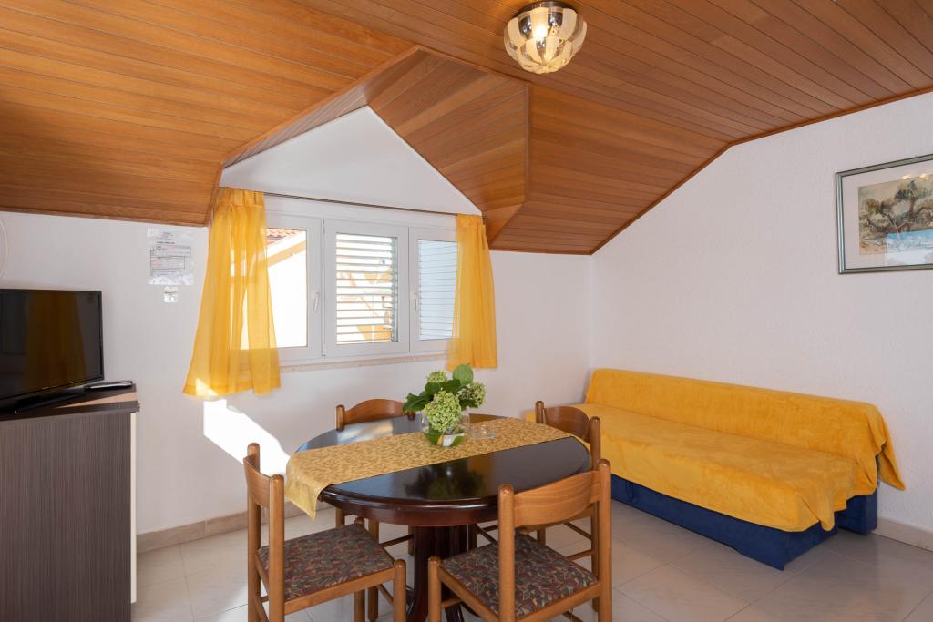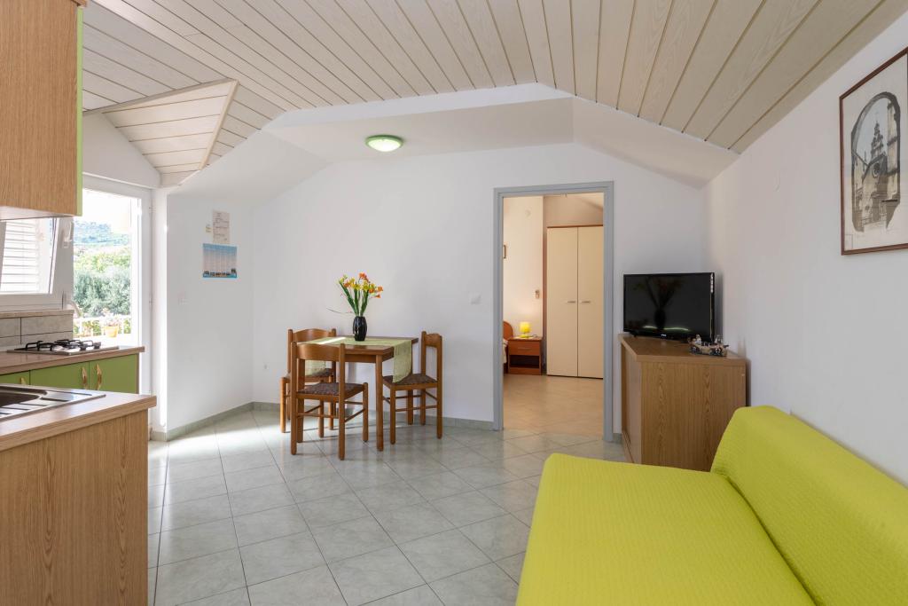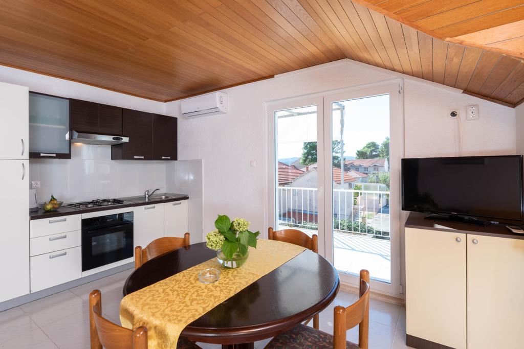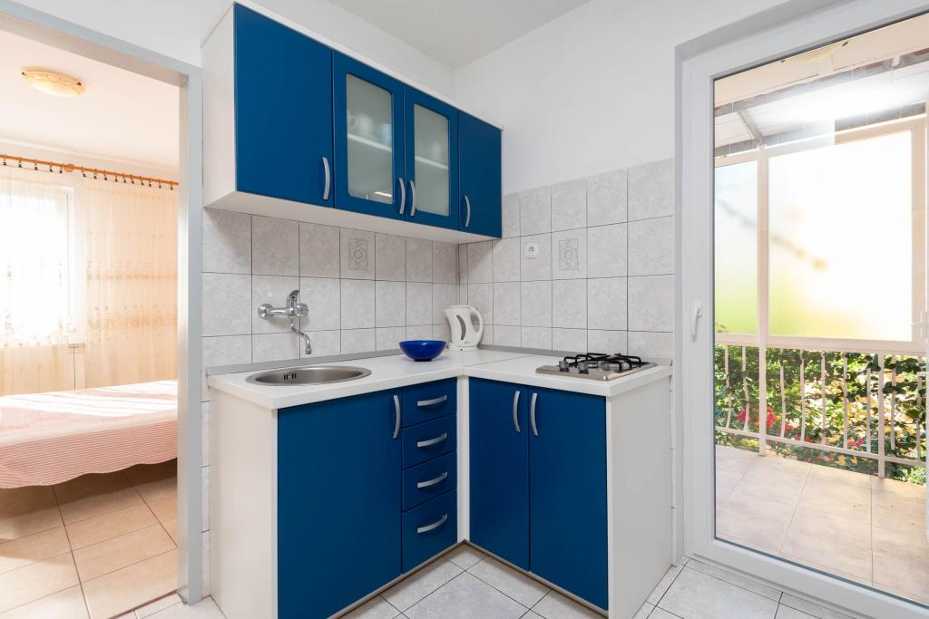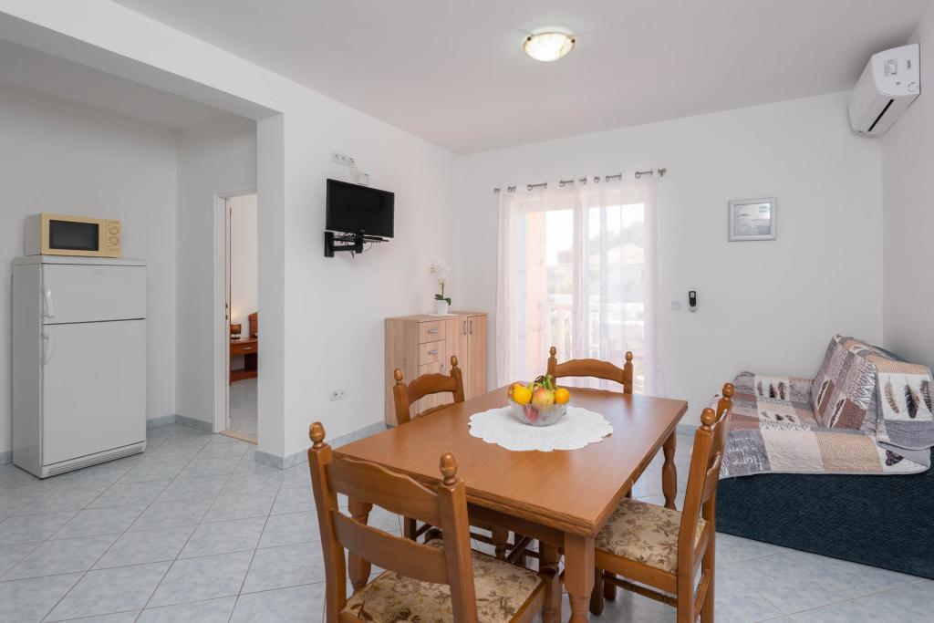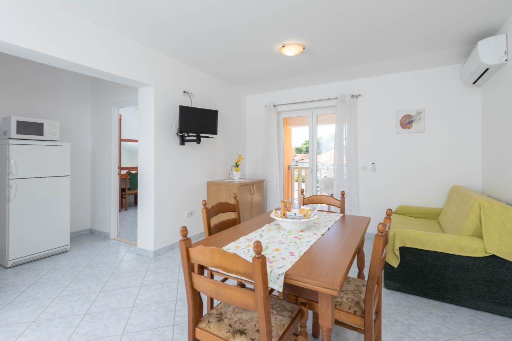 "Villa Melita" ligger lige ved havet, langs en rolig promenade. Dette sted er især velegnet til alle, der har brug for en pause. Huset har en smuk have med middelhavsvegetation, hvor der er en swimmingpool med liggestole. Der er også en grill til rådighed. Vores private parkeringsplads er også i nærheden. Alle vores lejligheder har aircondition, gratis WiFi, satellit-tv, et fuldt udstyret køkken, et badeværelse og en privat terrasse. Badehåndklæder og sengelinned er også inkluderet. Huset ligger i gåafstand fra adskillige restauranter, caféer, butikker og bagerier til alle dine daglige behov. Vigtigst af alt, den største bystrand Trstenica ligger kun 40 meter væk.