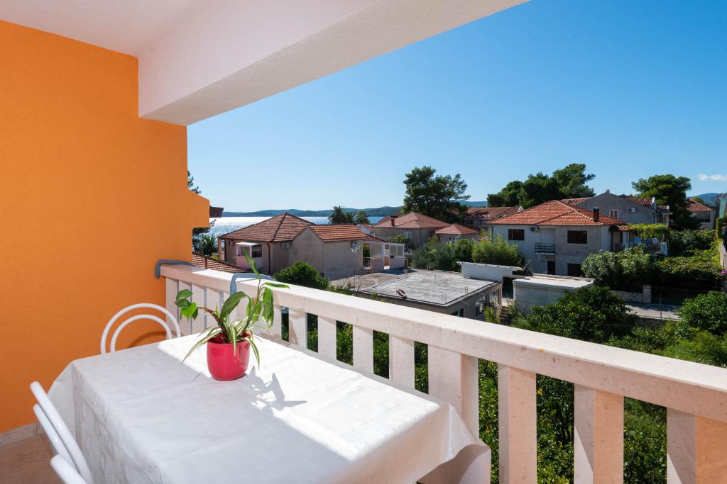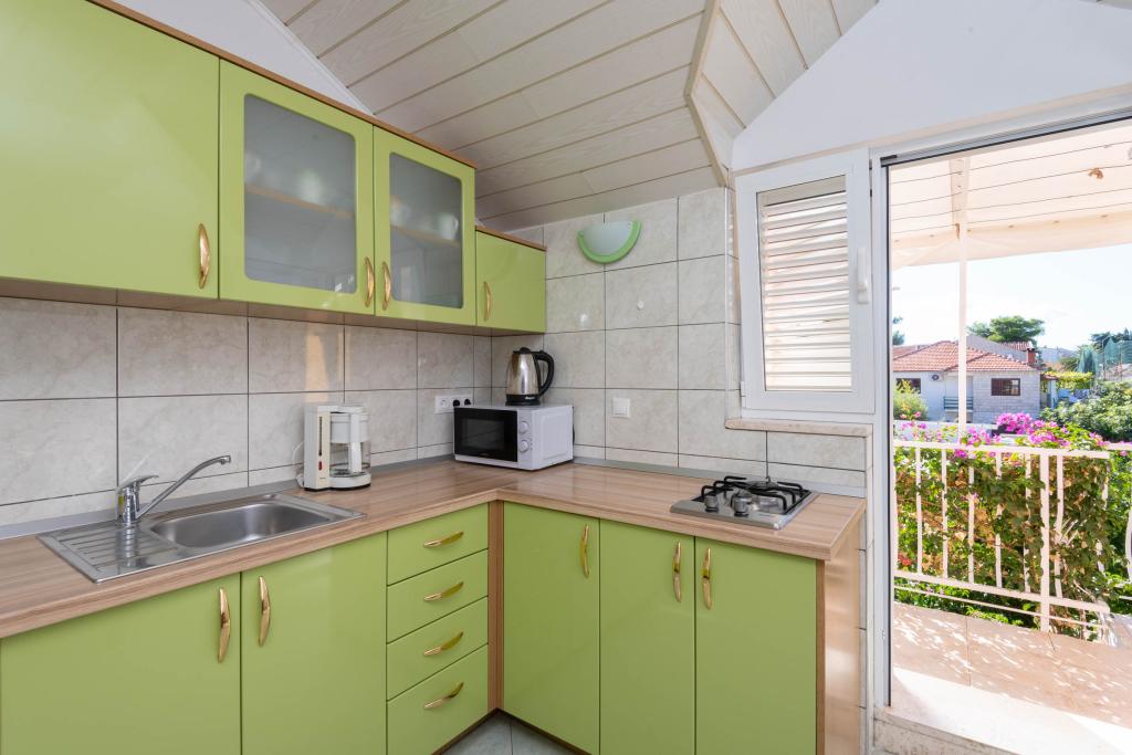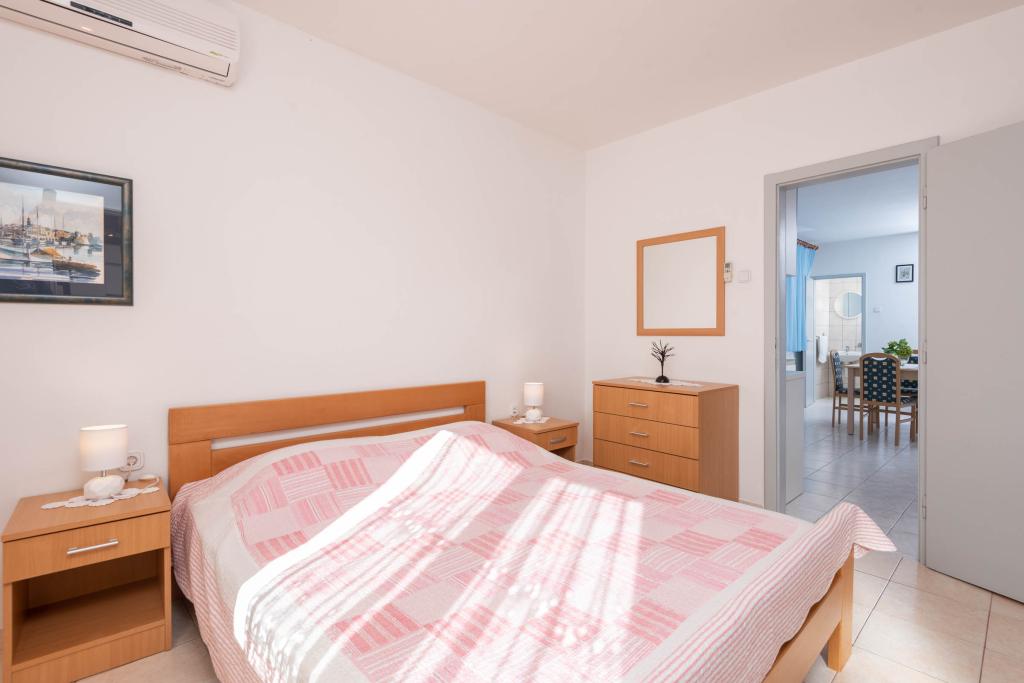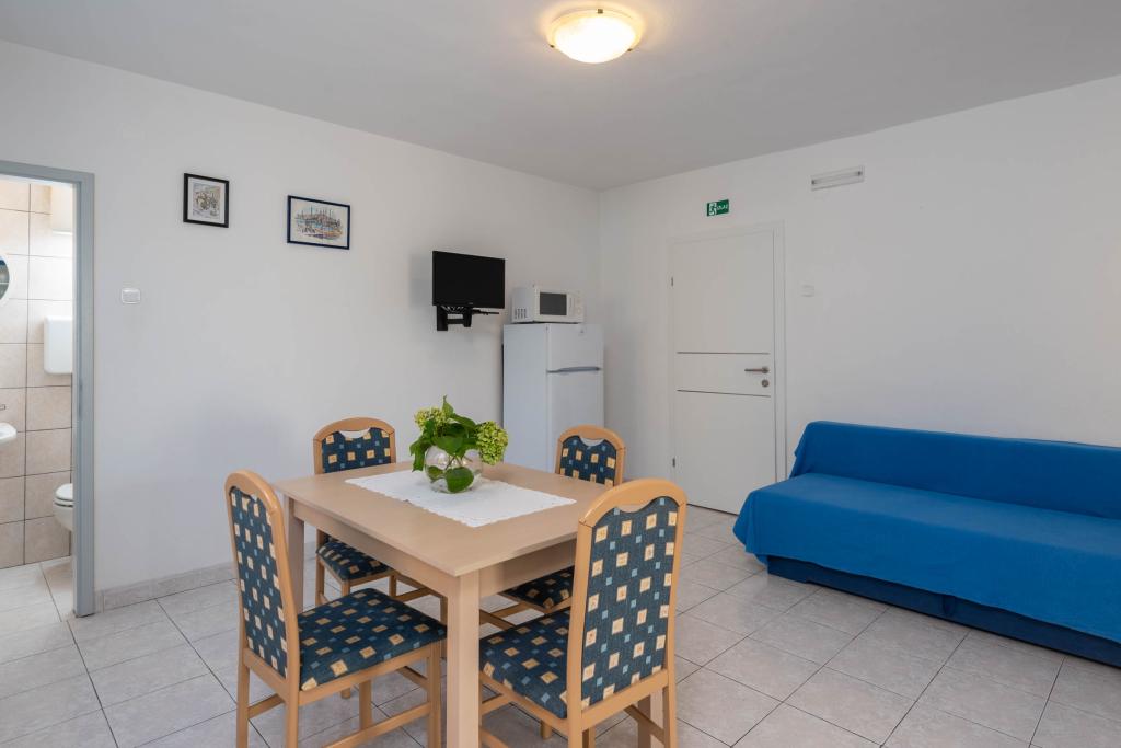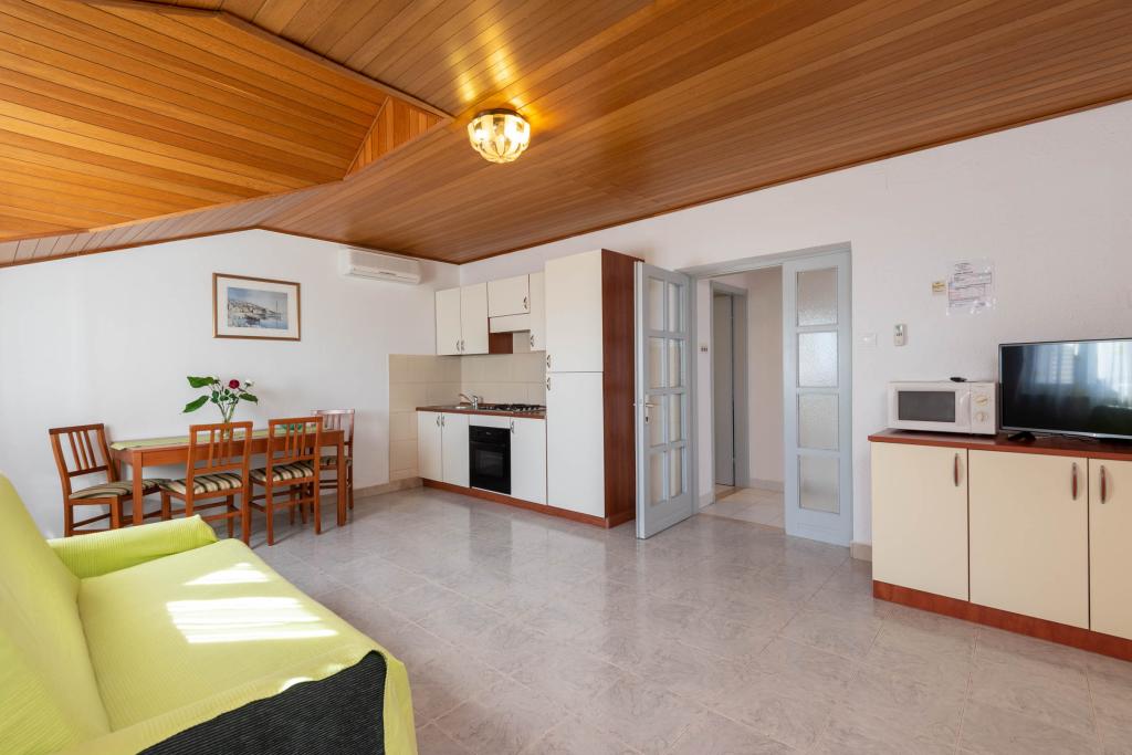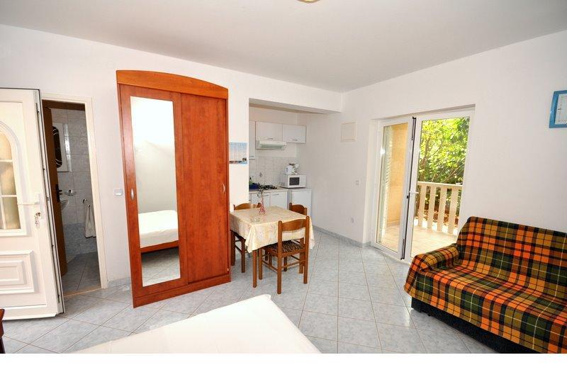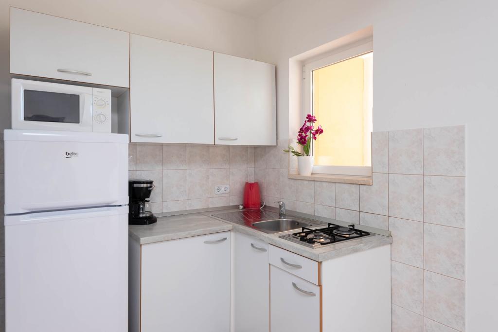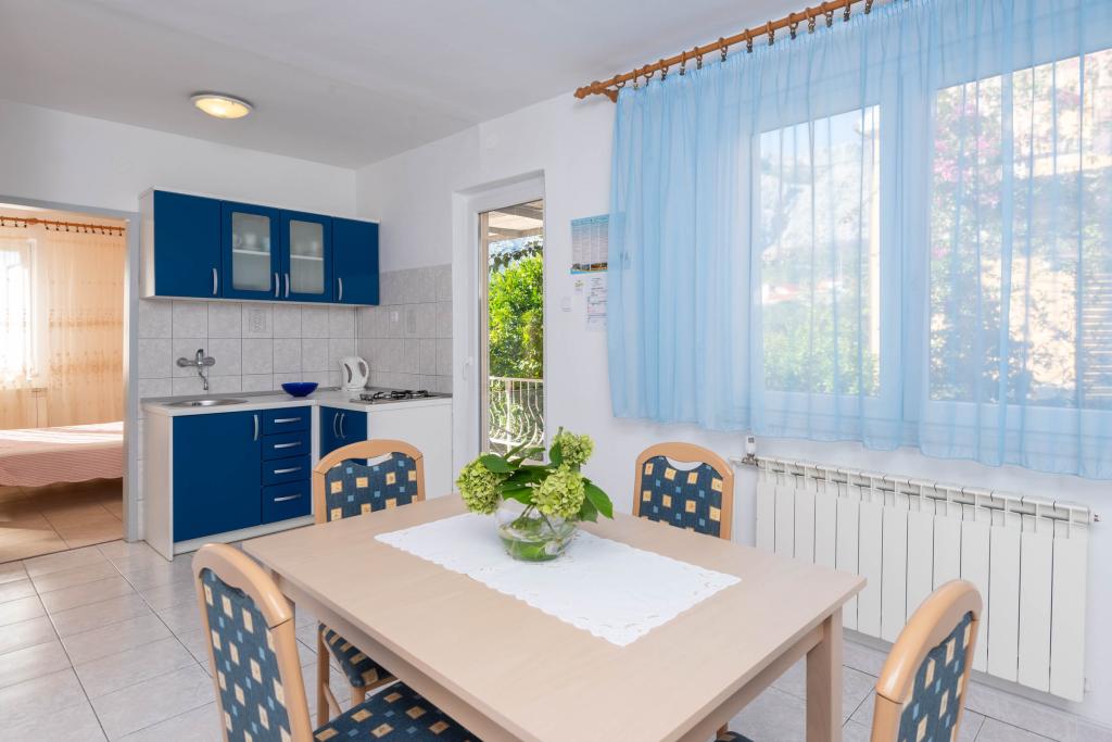 "Villa Melita" ligger lige ved havet, langs en rolig promenade. Dette sted er især velegnet til alle, der har brug for en pause. Huset har en smuk have med middelhavsvegetation, hvor der er en swimmingpool med liggestole. Der er også en grill til rådighed. Vores private parkeringsplads er også i nærheden. Alle vores lejligheder har aircondition, gratis WiFi, satellit-tv, et fuldt udstyret køkken, et badeværelse og en privat terrasse. Badehåndklæder og sengelinned er også inkluderet. Huset ligger i gåafstand fra adskillige restauranter, caféer, butikker og bagerier til alle dine daglige behov. Vigtigst af alt, den største bystrand Trstenica ligger kun 40 meter væk.