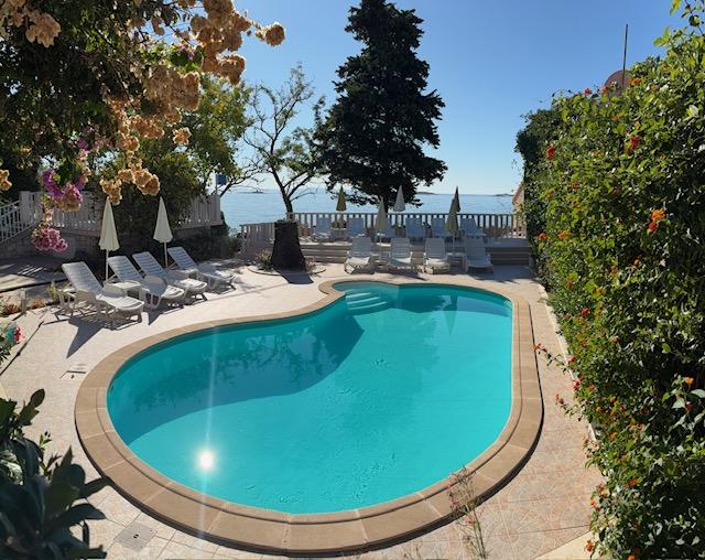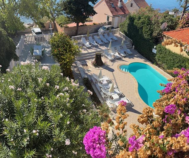 "Villa Melita" ligger lige ved havet og langs en rolig promenade. Dette sted er særligt velegnet til alle, der har brug for en pause. Huset har en smuk have med middelhavsvegetation, hvor der er en 32m2 swimmingpool med 14 liggestole. Der er også en grill til rådighed. Vores private parkeringsplads til hver lejlighed er også i nærheden. Alle vores lejligheder har aircondition, gratis WiFi, satellit-tv, et fuldt udstyret køkken, et badeværelse og en privat terrasse. Badehåndklæder og sengelinned er også inkluderet. Huset ligger i gåafstand fra adskillige restauranter, caféer, butikker og bagerier til alle dine daglige behov. Vigtigst af alt er den største bystrand Trstenica kun 40 meter væk.