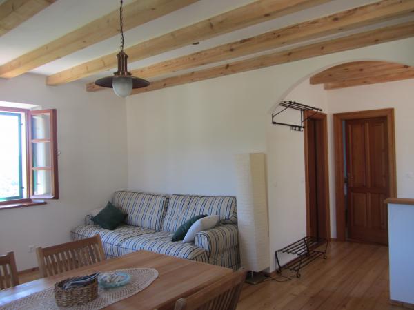 For nylig restaureret traditionelle stenhus i etno landsby Goveđari i hjertet af nationalparken. Huset består af to lejligheder med separate indgange og terrasser og arbejde selvstændigt, og kan også lejes som en komplet hus til flere mennesker. Lejlighed nr. 1 er 60m2 med terrasse på 30m2, fuldt møbleret med alt til et behageligt og komfortabelt ophold på 4 personer (2 personer på sofaen i stuen). Lejlighed nr. 2 er 90m2 med terrasse på 60m2, med to separate soveværelser og en åben grill på terrassen. Komfortabel til 4 personer. Begge lejligheder er udstyret med alt det nødvendige for et behageligt ophold: komfur, ovn, køleskab, fryser, brødrister, kedel, vaskemaskine, varme, aircondition, LCD TV, DVD, trådløst internet ... Anlægget er placeret 10 minutters gang sti gennem pinjeskov i Babas hus og De Store Søers, vandreture og cykling områder. Landsbyen Goveđari er lille og maleriske sted perfekt til en rolig ferie.
