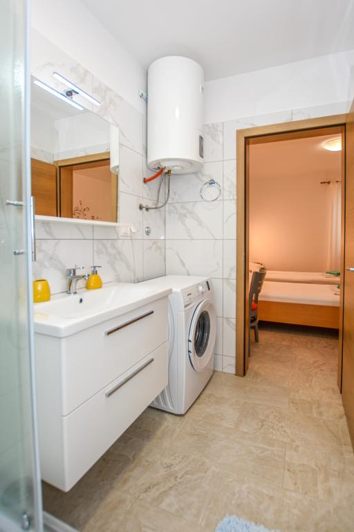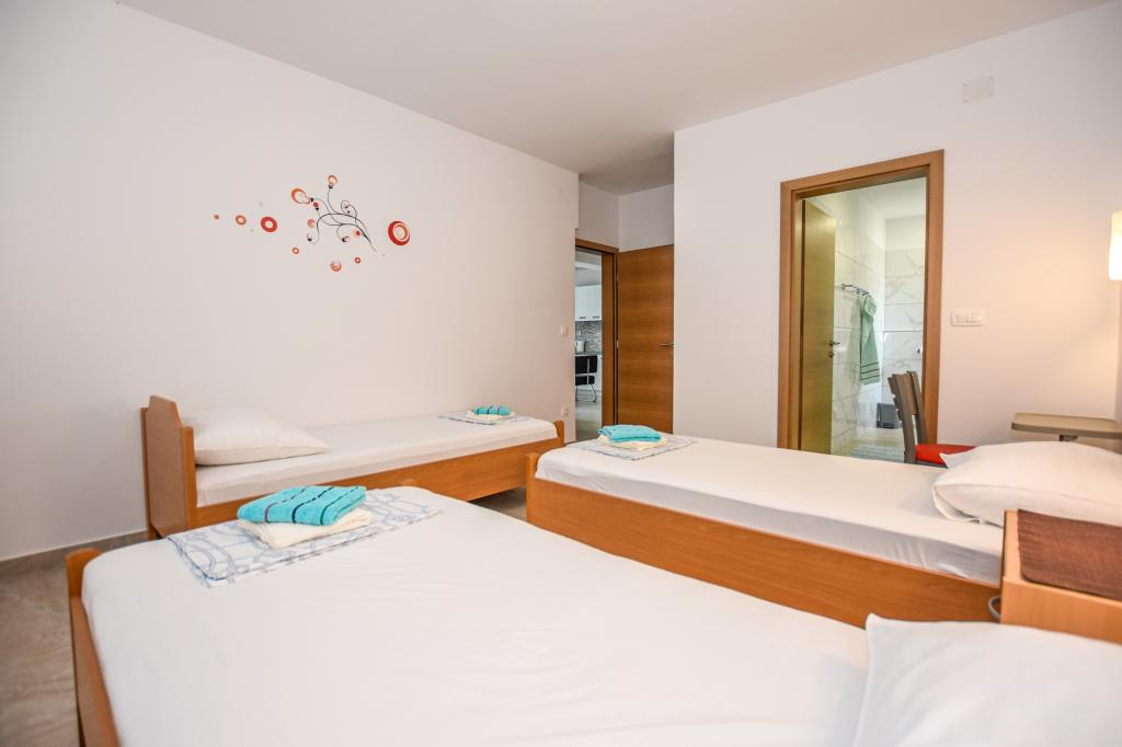 Apartments Oleandra er beliggende i centrum af turistbyen Mandre, på øen Pag, i en stille gade kun 60 meter fra den nærmeste strand. Vi udlejer tre lejligheder. Alle terrasser vender ud mod havet. Vi har en grill i gården, som er tilgængelig for alle gæster. Vi har en rummelig parkeringsplads til op til 10 køretøjer, som er gratis for vores gæster. Vi brugte år 2020 til en totalrenovering af alle lejligheder, for at opfylde betingelserne for 4-stjernet kategorien. Toværelseslejlighederne på 1. sal har nu to badeværelser, opvaskemaskine og vaskemaskine, nye el- og vvs-installationer. Hver lejlighed har en separat indgang.