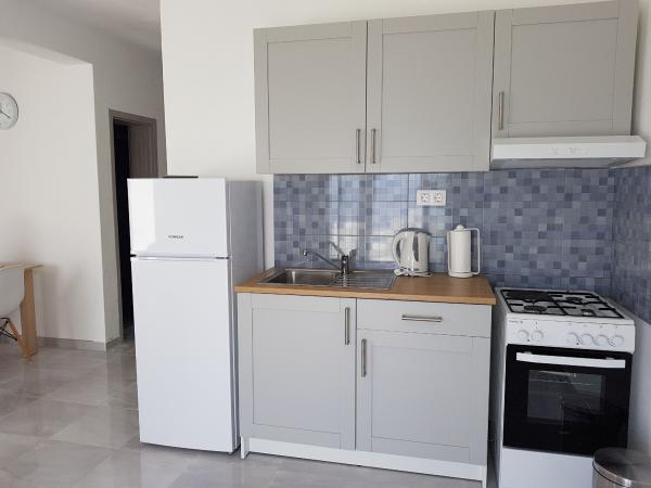 Vores lejligheder er beliggende ved havet, i centrum af Mandri, på øen Pag. Alle lejligheder ligger på 1. sal i vores familiehus, så de byder på en smuk udsigt over havet. Lejlighederne er nyistandsatte og udstyret med internet, aircondition, TV/SAT, fuldt udstyrede køkkener, og som tillæg kan man sænke myggenet på alle vinduer sammen med persiennerne, som beskyttelse mod myg. Hver lejlighed har sin egen parkeringsplads, og alle gæster kan benytte grillen i haven. Gennem vores gård går du direkte til stranden, så for en behagelig ferie i solen, behøver du kun et håndklæde over skulderen! Vi glæder os meget til din ankomst!