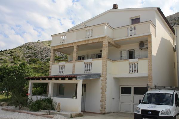 Er fire nye lejligheder Alaburić i Pag, som ligger 200 meter fra havet. Til centrum af byen i bil er 3 minutter, og til Novalja (Zrce) er 25 minutter. Lejlighed 1 i stueetagen har to soveværelser, badeværelse, køkken og spisestue som en del af en terrasse med en have. Lejlighed 2 på første sal (a) har et soveværelse, badeværelse, køkken og spiseplads i balkonen og lejligheden 3 på første sal har to soveværelser, badeværelse, køkken og spiseplads i den store balkon. Lejlighed 4 er på gulvet. Det har et soveværelse, badeværelse og køkken delvis verliku terrasse. Suiterne giver en smuk udsigt over havet og bugten Pag. På anmodning kan du leje hele huset. Bygningen har en autentisk dalmatiske værtshus, der kan bruges til behageligt selskab.
