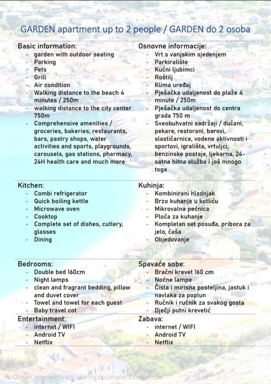 Velkommen til Apartments Harmonija – dit ideelle sted for en ferie på øen Pag i byen Pag! Vores hus har en fantastisk beliggenhed: kun 250 m fra byens hovedstrand Prosika og mindre end 10 minutters gang til centrum, hvor restauranter, caféer og charmerende gader i den gamle bydel venter på dig. Vi tilbyder tre moderne indrettede lejligheder: - APP1 med balkon og havudsigt - APP2 med privat have til ro og afslapning - APP3 med panoramaudsigt over havet, byen og Velebit. Alle lejligheder har et fuldt udstyret køkken, Wi-Fi, tv med Netflix, sengelinned og håndklæder. Gæsterne har adgang til en gårdhave med gasgrill og sikker parkering foran huset. Der er adskillige skjulte strande i nærheden – perfekt til en aktiv ferie eller fredelig nydelse. Hvorfor vælge Apartments Harmonija? - Fremragende beliggenhed nær stranden og centrum - Venlige værter og en behagelig atmosfære - Fuldt udstyret til en ubekymret ferie - Ideel for familier, par og rejsende, der søger fred