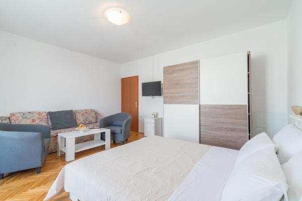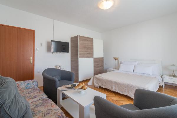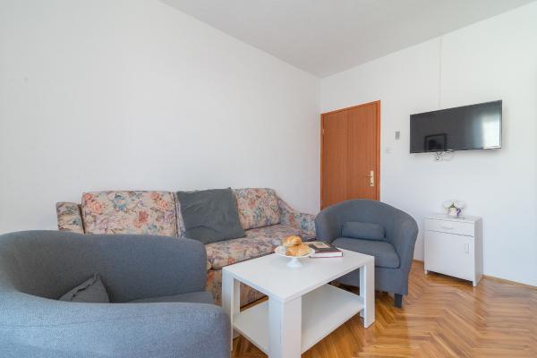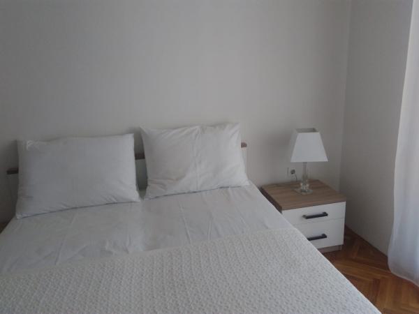 Ferielejligheder Katica ligger på første sal af huset 70 meter fra havet, 10 minutters gang fra den gamle bydel i et roligt område velegnet til familier. Det har et studie for to personer plus ekstra seng. Studiet har et stort rum, køkken og badeværelse. Lejligheden er til fire personer og en ekstra seng. Lejligheden har to soveværelser, køkken og badeværelse. Enten du har wi-fi, aircondition og parkering i gården. Position til Novalja er 20 minutter og til Zadar 45 minutter i bil. Du er velkommen i vores hus.