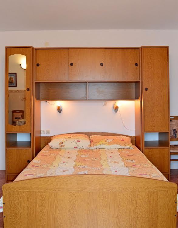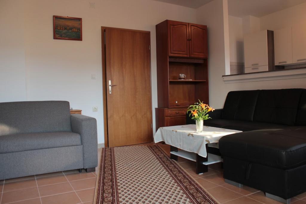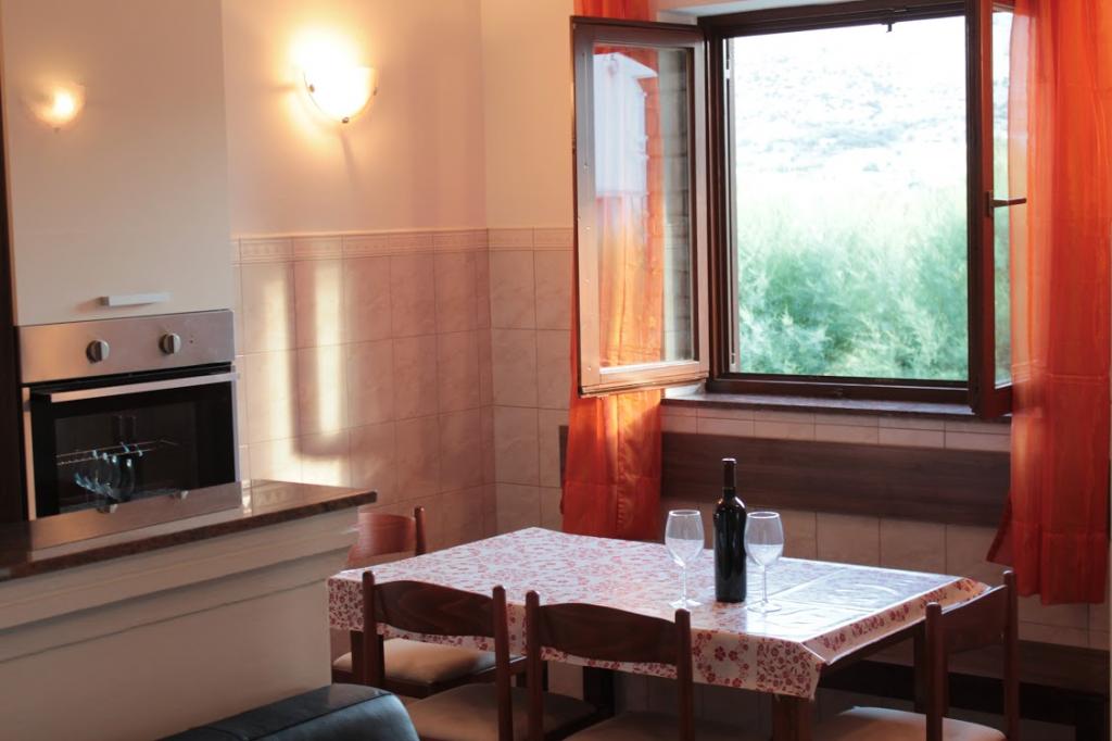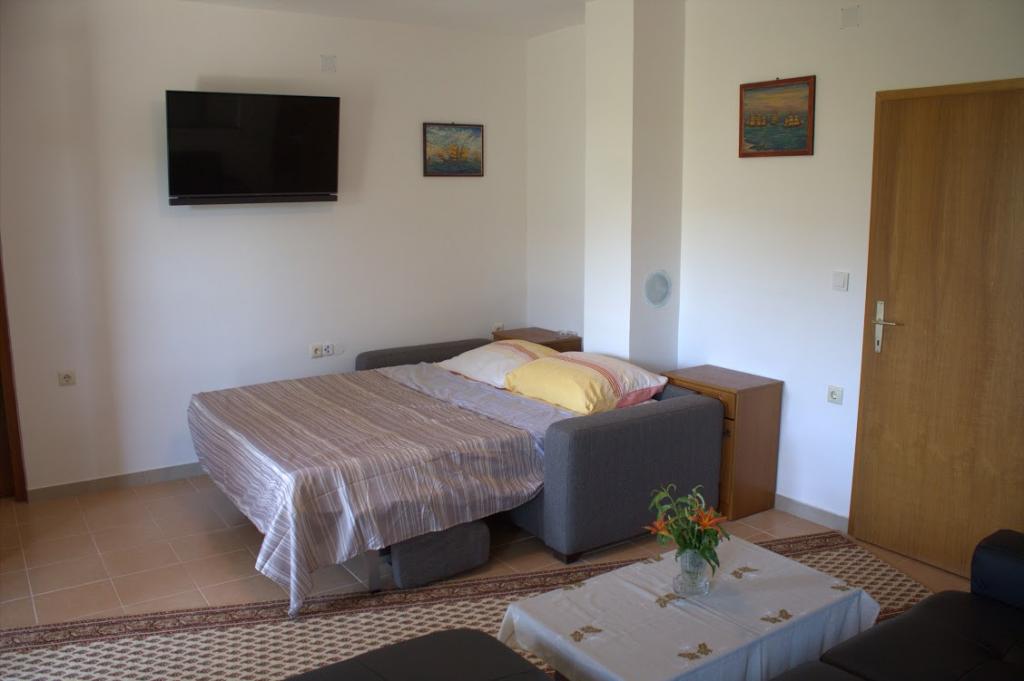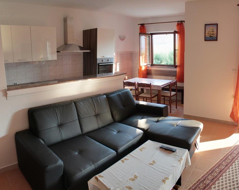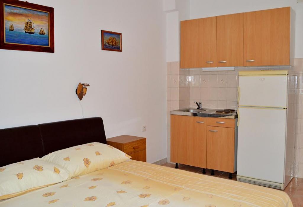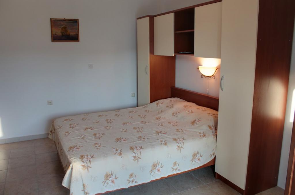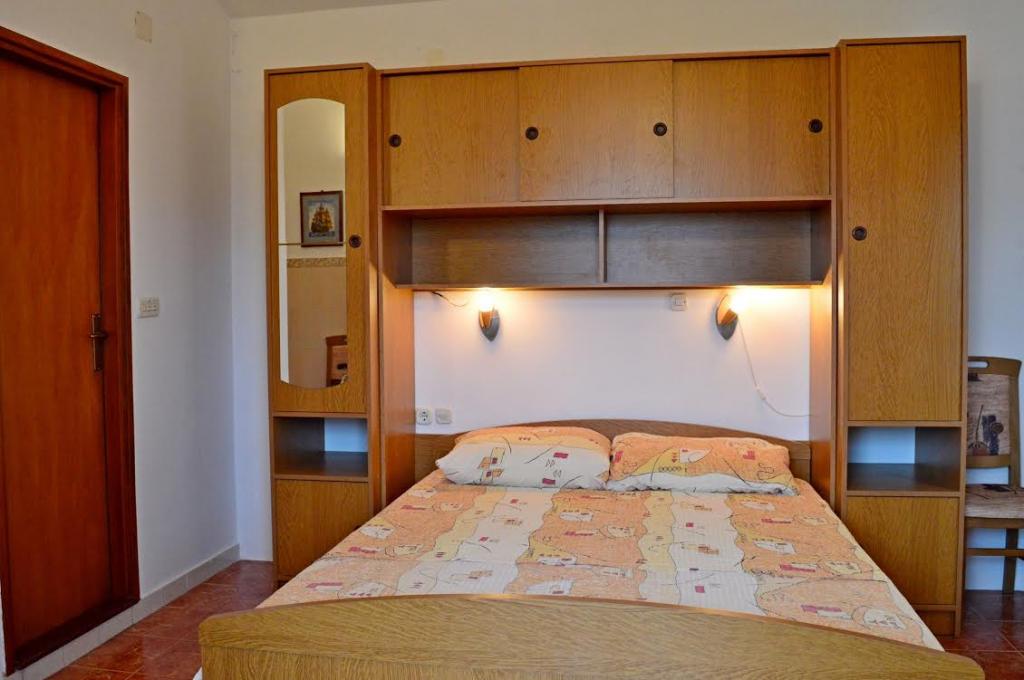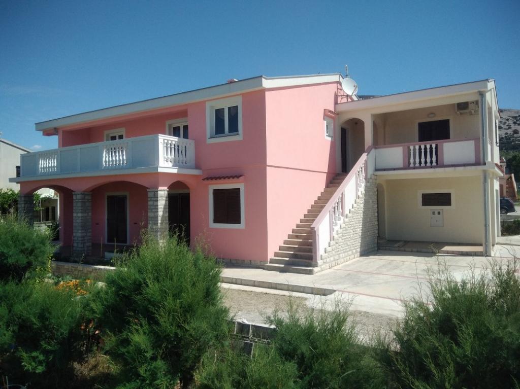 Tre studiolejligheder: værelser med køkken, badeværelse og en stor lejlighed til 4 personer (2 + 2) ligger i byen Pag. To studiolejligheder ligger i stueetagen og en studiolejlighed på første sal i et stort familiehus. Beliggende 10 minutters gang fra hovedtorvet og femten minutter fra byens største strand. Lejlighederne ligger i et meget roligt og fredeligt sted omgivet af haver, natur og grønne områder, der er velegnet til gæster, der ønsker fred og ro. Lejlighederne har en plads på 30 kvadratmeter til to personer, har et soveværelse, køkken og badeværelse med bruser, foran indgangen til lejligheden er der små terrasser. Lejlighederne er udstyret med tv, satellit og internetforbindelse, lejligheden på første sal har aircondition. I stueetagen i et stort familiehus er der en lejlighed på 60 kvadratmeter med et soveværelse, stort køkken, stor stue med dobbeltseng til fire personer (2 + 2). Foran lejligheden er der en lille terrasse.