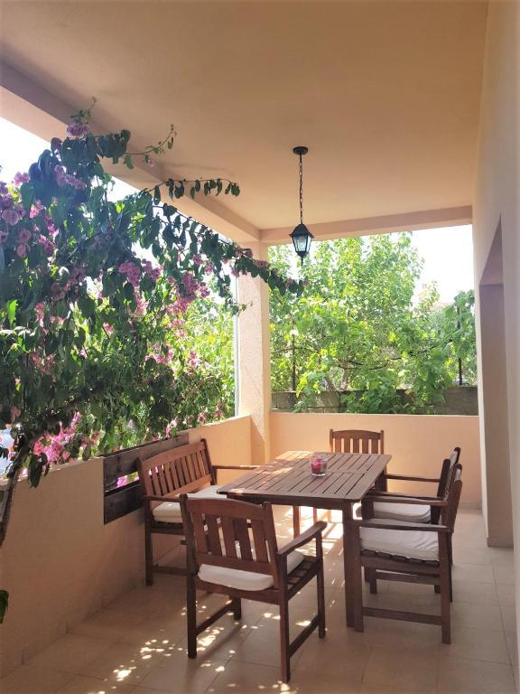 Den overdækkede terrasse tilbyder rigelig plads til familiesammenkomster og hverdagens afslapning. Der er en privat parkeringsplads i husets gårdhave, som er tilgængelig for gæster uden ekstra beregning.